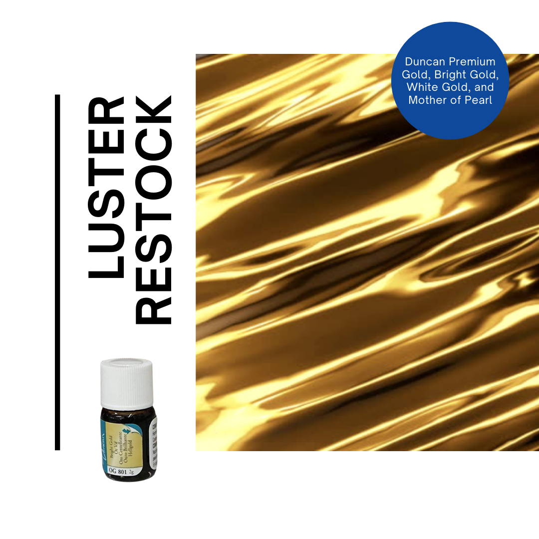 Ducan Premium Gold, Bright Gold, White Gold, and Mother of Pearl Lusters are back in stock!