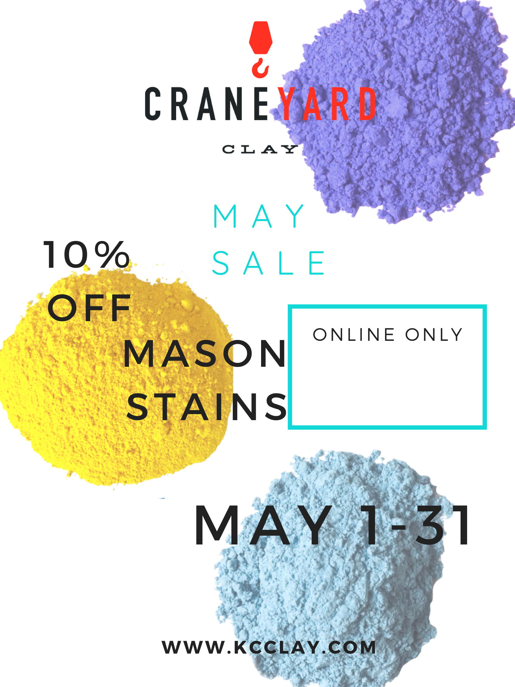 Want to add color to your clay body or create a custom-colored glaze? Purchase Mason Stains online this month and save 10%. They are ideal for cone 5/6 and can be wedged into a wet clay, or mixed into a casting slip or pre-existing glaze.