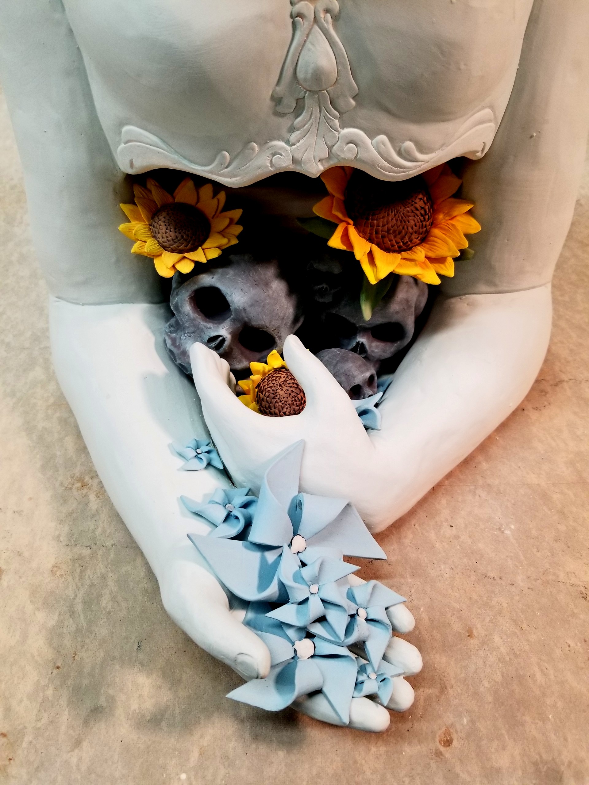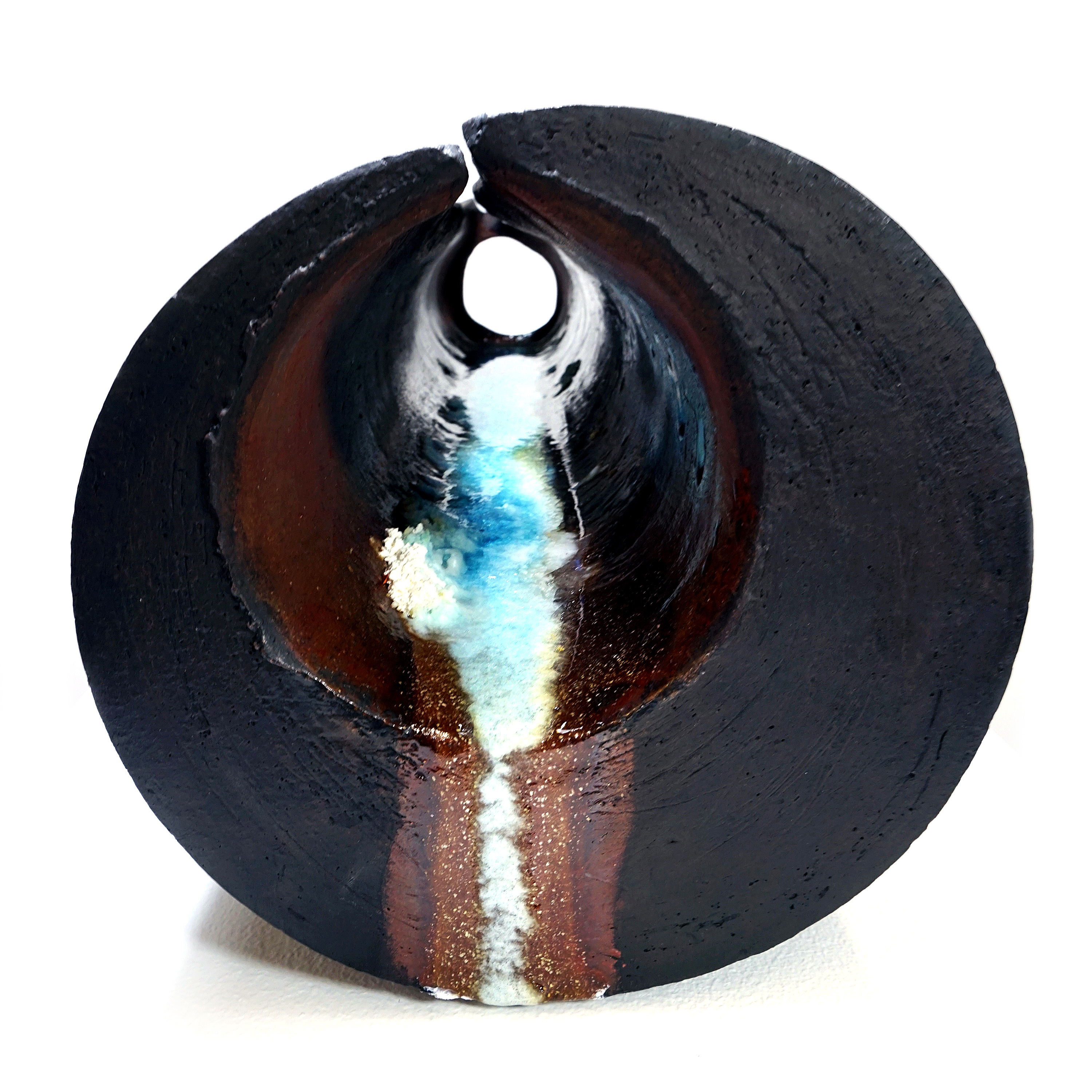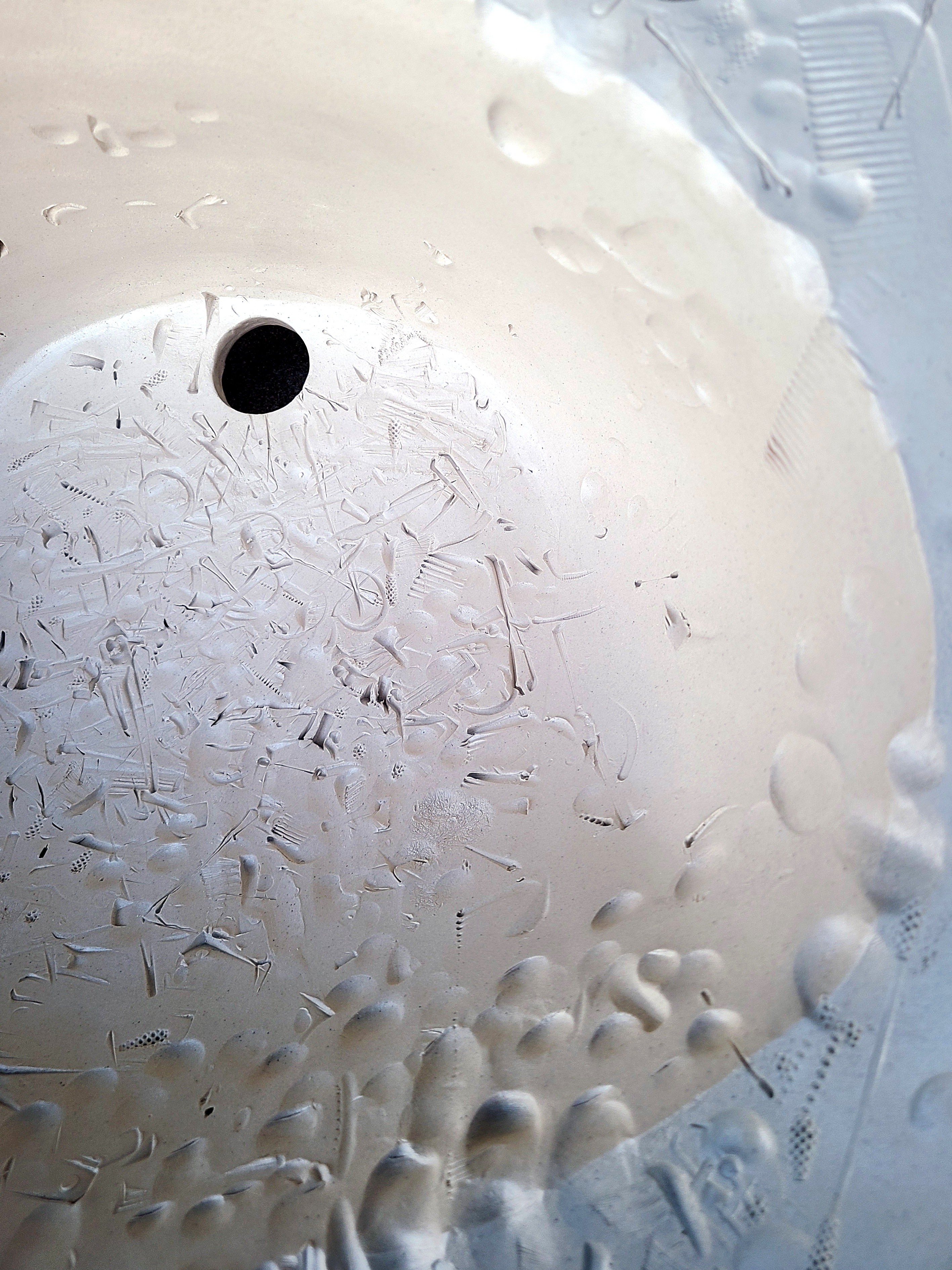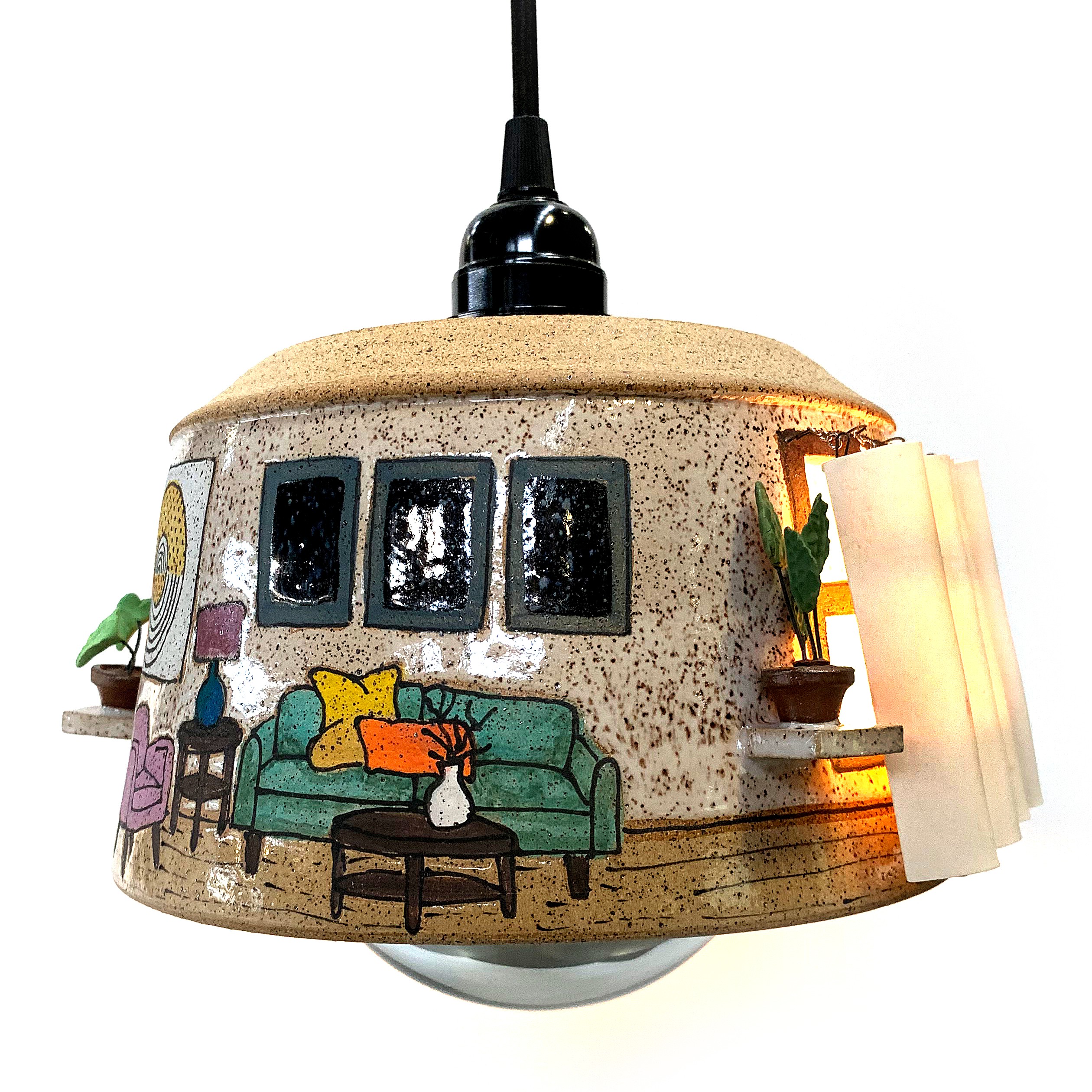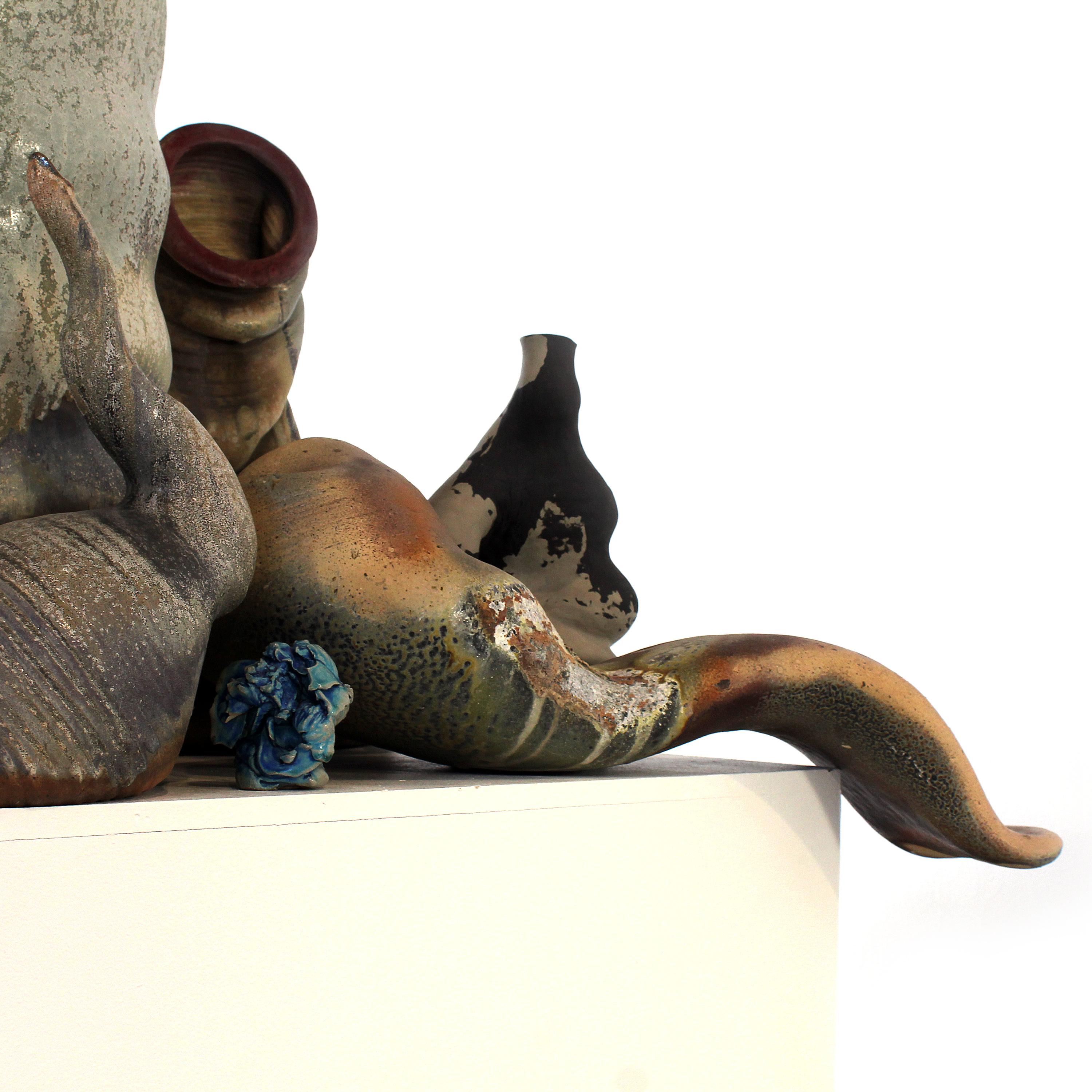 Referencing architectural forms, the work of Elaine Buss is driven by intuition and a surrender to natural forces. Her instinctive making process becomes a playful flow between cause and effect. Coleton Lunt’s sculpture cluster explores the notion that ecosystems exist all around us, and how cycles of addition and loss create an ever-changing present state. The work of Lilly Powell directs attention to the often overlooked or discarded objects we routinely touch but take for granted. Kate Schroeder’s light installation draws the eye upward and into an enchanting array of tiny, illustrated worlds. Each ceramic light fixture offers a serene view of domestic life, surrounded by the familiar objects of home. ChengOu Yu’s distorted vessel forms demonstrate how perspective and location can alter an experience and influence understanding. The figurative work of Amy Young delves into the interior of a mind living with PTSD. Through detailed symbolism and intricately carved surfaces, Young gives shape to feelings of pain, struggle, and acceptance.