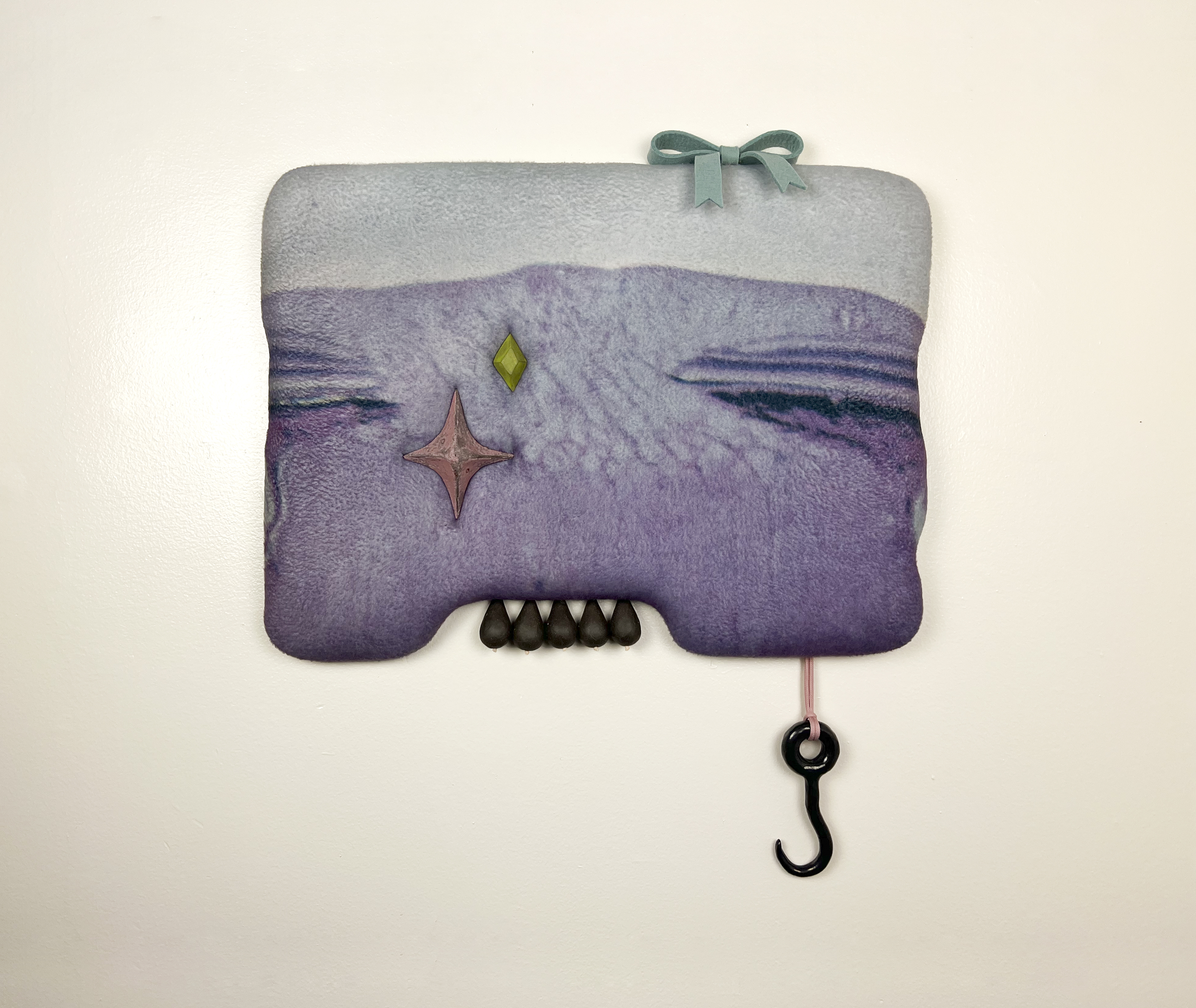 Padyn Humble is a sculptor from Montana whose work investigates social norms and the way they influence identity. He utilizes Western iconography and his inspiration stems from influences like cartoons, truck stop souvenirs, and queer pop culture. Matt Mitros uses a visual language of botanical pastiche to depict the emotional relationship between plants and machines. Themes of survival, growth, and metamorphosis are prevalent in his work through visual displays of conflict and celebration. Danni O’Brien’s work is rooted in play, collecting, and constructing and is informed by an education in assemblage sculpture, fiber arts, and ceramics. Her fantastical cast-offs from upcycled materials marry construction and wood working with traditionally feminized and domesticated systems such as stitching, beading, and rug making to compose dually hard and soft objects. Danni O’Brien and Ben Galaday wield nuanced abstraction to engage the viewer with blurred dreamlike compositions. Galaday’s work, however, is a dark counterpart to O’Brien’s flamboyancy. Oscillating between demoralizing and seducing, Galaday taps into the truths of the human condition creating kaleidoscopic approximations of life, death, decay, rejuvenation, and apathy. Matthew Wicks uses kitschy, everyday symbols such as suits of playing cards or domestic objects to subvert ideas of hypermasculinity in Western culture.