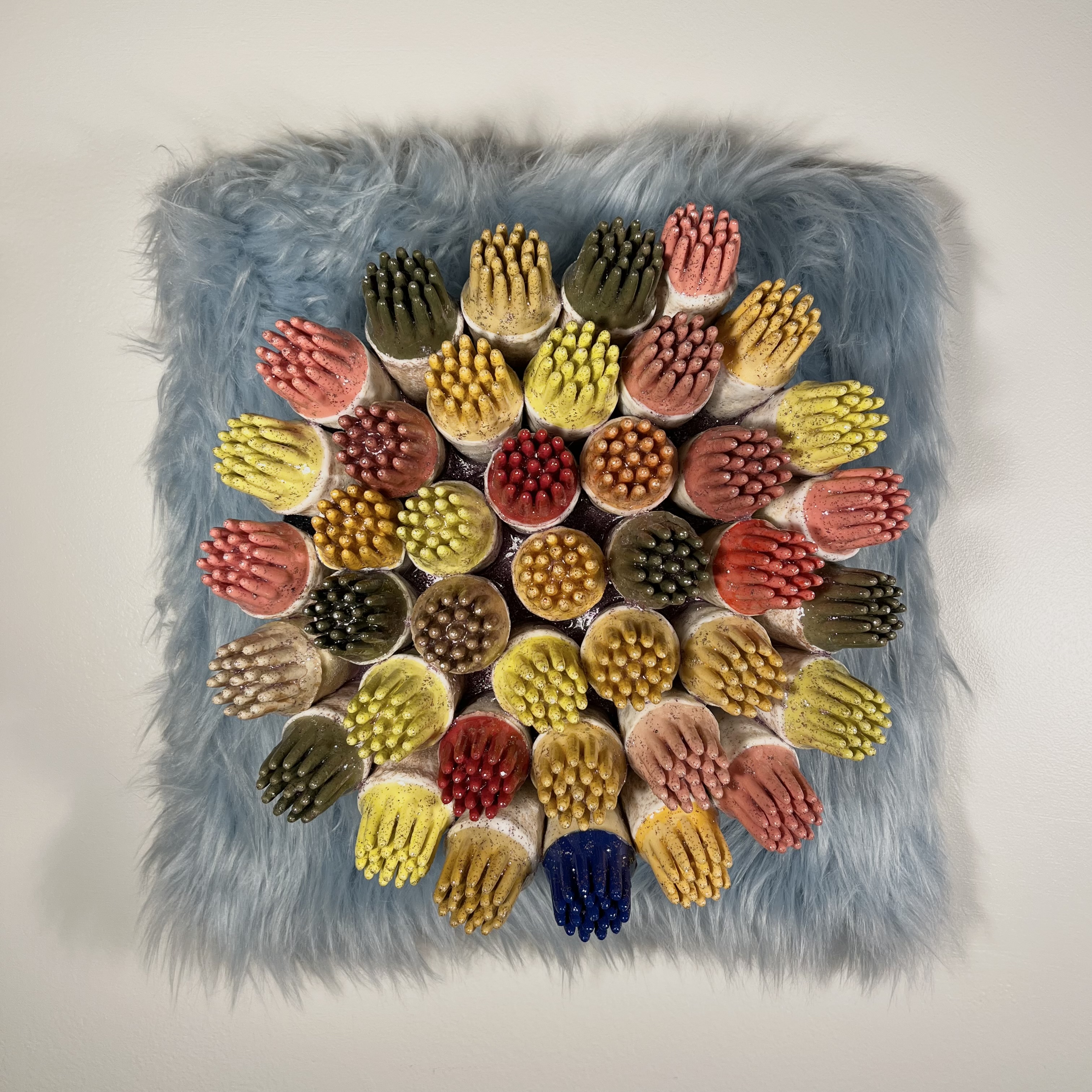 The Collective, formed by Matt Mitros in 2018, includes artists from a range of backgrounds who share an irreverent appreciation for the intersection of craft and art. While the artists do not align to a common theme or subject, they share a quasi-humorous tone and campy bravado regarding material usage and illusion.