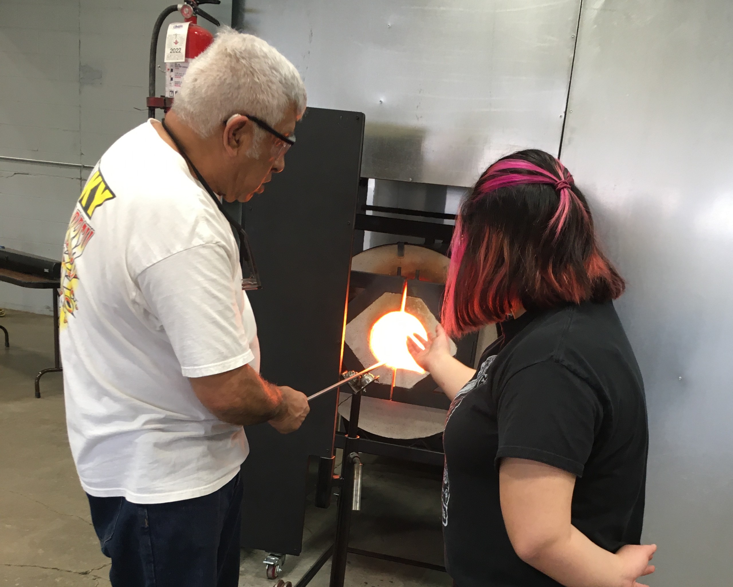 If you are interested in a more in depth glassblowing education, try a Glass I class. Glass I provides a strong foundation in the basics of glassblowing. Learn how to gather molten glass, how to add a bubble into the glass, and how to shape the glass using traditional tools and techniques.