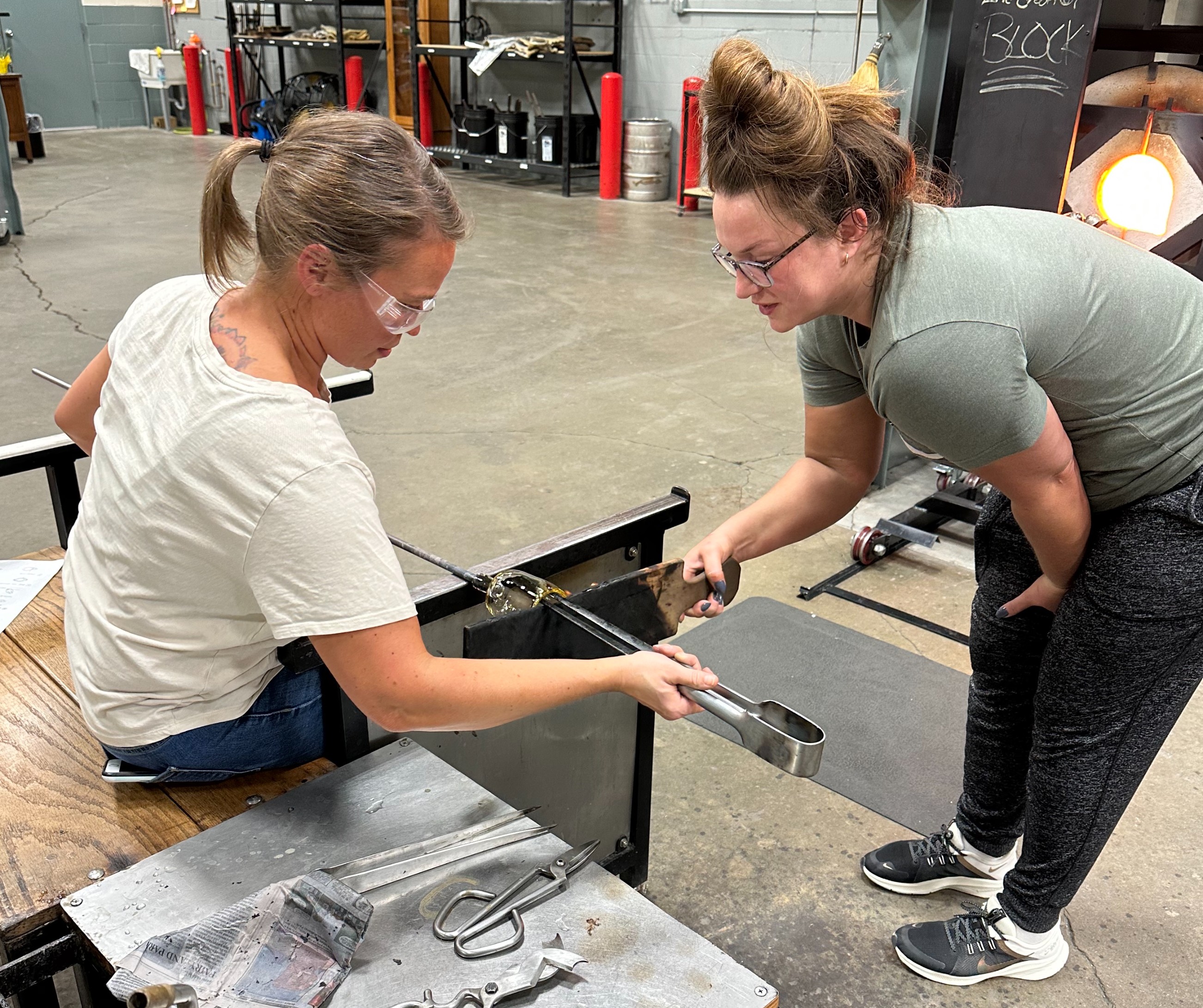 Learn to blow glass at the Belger Glass Annex! Glass 1 introduces the fundamentals of glassblowing and is offered as both a four-week evening class and as a two-day weekend intensive. The next class starts up on Wednesday, May 17.