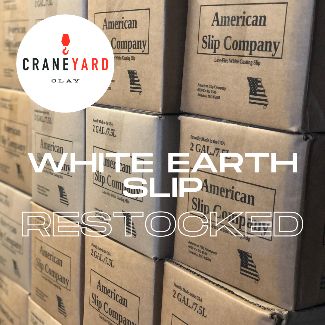 Low-fire white earthenware casting slip has been restocked. Purchase online or in store today!