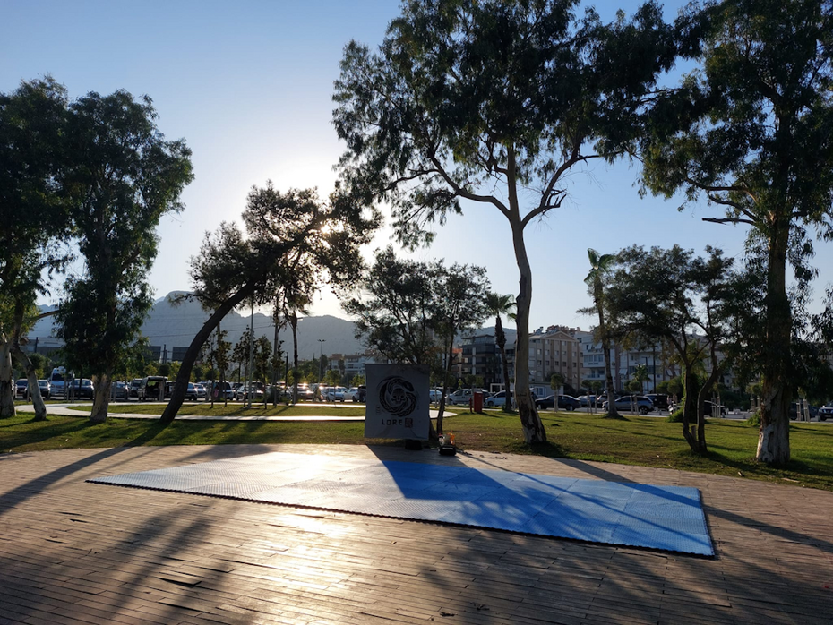 | | Where is the gym located? Our gym has no building. It’s a nomadic outdoor dojo in Antalya, Türkiye. So we don’t have a single location. We have spots we love, like parks and beaches. We can change locations when needed, or just because we want to. These days, we do our technical training in Erdal İnönü Park, Lara, and our Open Mats at Konyaaltı Public Beach. After the Open Mats, we love swimming in the sea. How many people train there? Average 15 on the mat. But our community is much bigger and it’s getting bigger. Antalya is a tourism city and the circulation of local and global people is incredible.