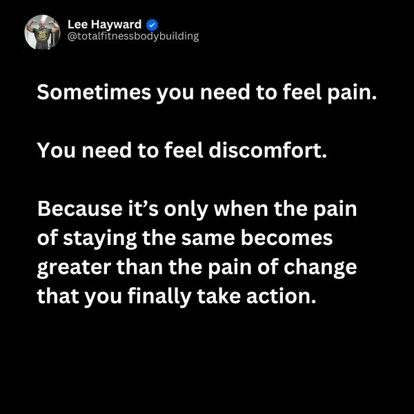 Sometimes you need to feel pain. You need to feel discomfort. Because it's only when the pain of staying the same becomes greater than the pain of change that you finally take action.
