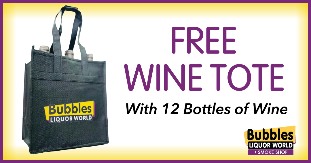 Meet your new favorite shopping buddy – the Bubbles Liquor World Buy 12 or more bottles of wine and get a Bubbles-branded 6-bottle tote FREE. Bring your Bubbles tote back and fill it with 6 or more bottles of wine to save 10% on those wines every time you use it. Don’t have one yet? Totes are also available for just $5.99 so you can jump in on the savings.