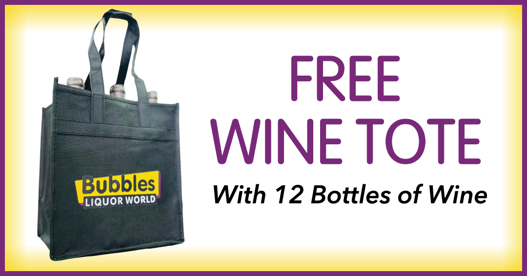Our Gift to You: Bubbles Wine Totes! Meet your new favorite shopping buddy – the Bubbles Liquor World Buy 12 or more bottles of wine and get a Bubbles-branded 6-bottle tote FREE.