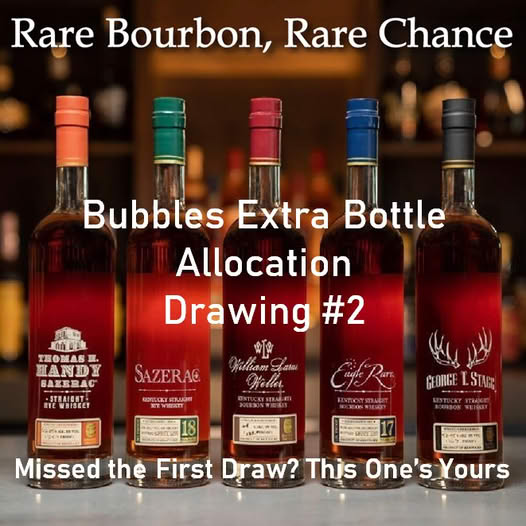 Stock up, chill out, and toast to 2026—only at Bubbles. | | | BUBBLES EXTRA WHISKEY BOTTLE ALLOCATION – DRAWING #2 Didn’t win in the December 13th Fishbowl Draw? Good news — your original entry is automatically included Location: In-store at Bubbles - All non-winning entries from Drawing #2 will be entered - Dozens of allocated bourbon bottles will be drawn - Drawing will be held live in-store NO PROXIES — NO EXCEPTIONS