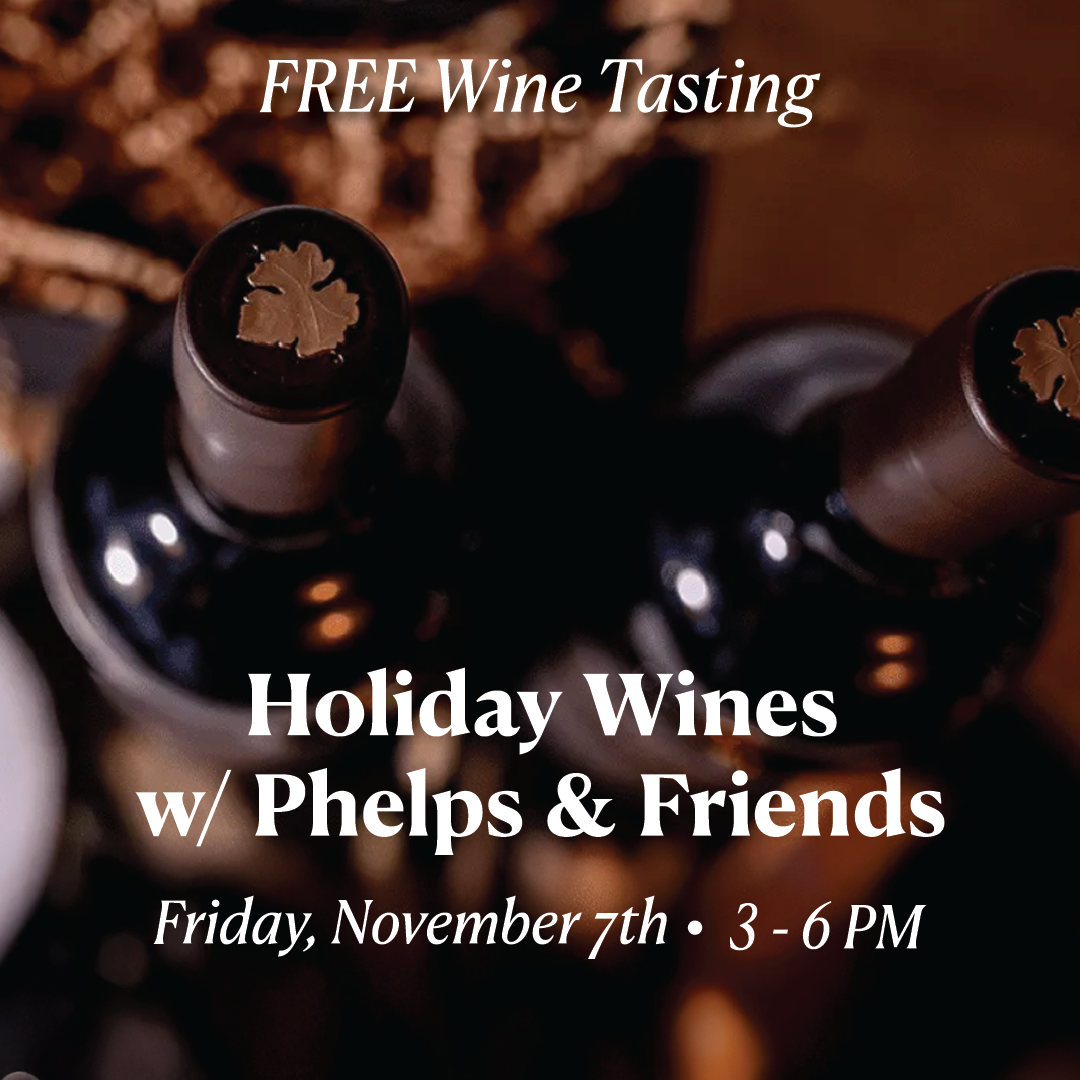 | We’re in that wild lull between holidays—so why not refill the rack before the next party erupts? Snag bold reds, bright whites, and bubbly favorites at can’t - miss prices. Grab your favorites now and be ready when the next celebration creeps up on you! | | | | Join us for a free in-store “Phelps and Friends” wine tasting—a holiday celebration of elegance and craftsmanship. Guests can sample a curated lineup of world-class wines: Skyside Chardonnay – a balanced North Coast wine from the Joseph Phelps legacy, known for approachable luxury.