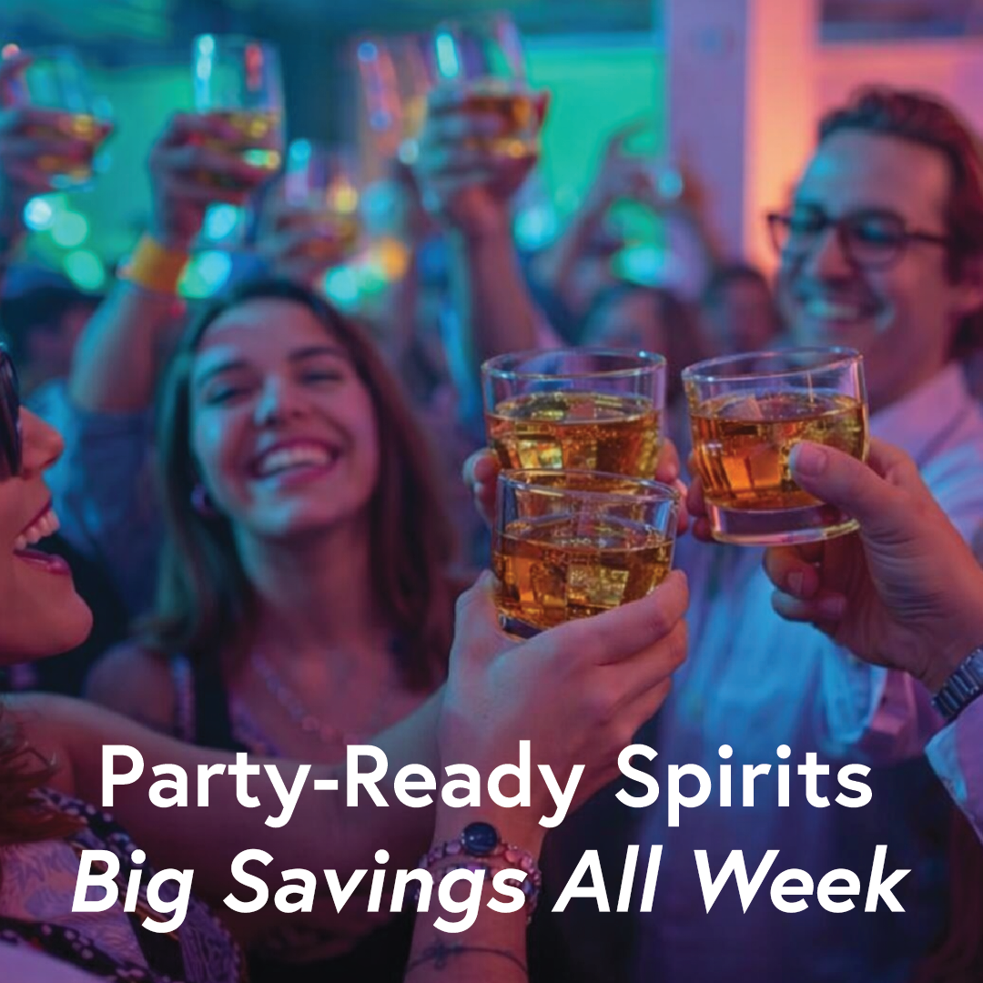 Big savings on party-ready spirits all week. Stock the bar and start the countdown. |