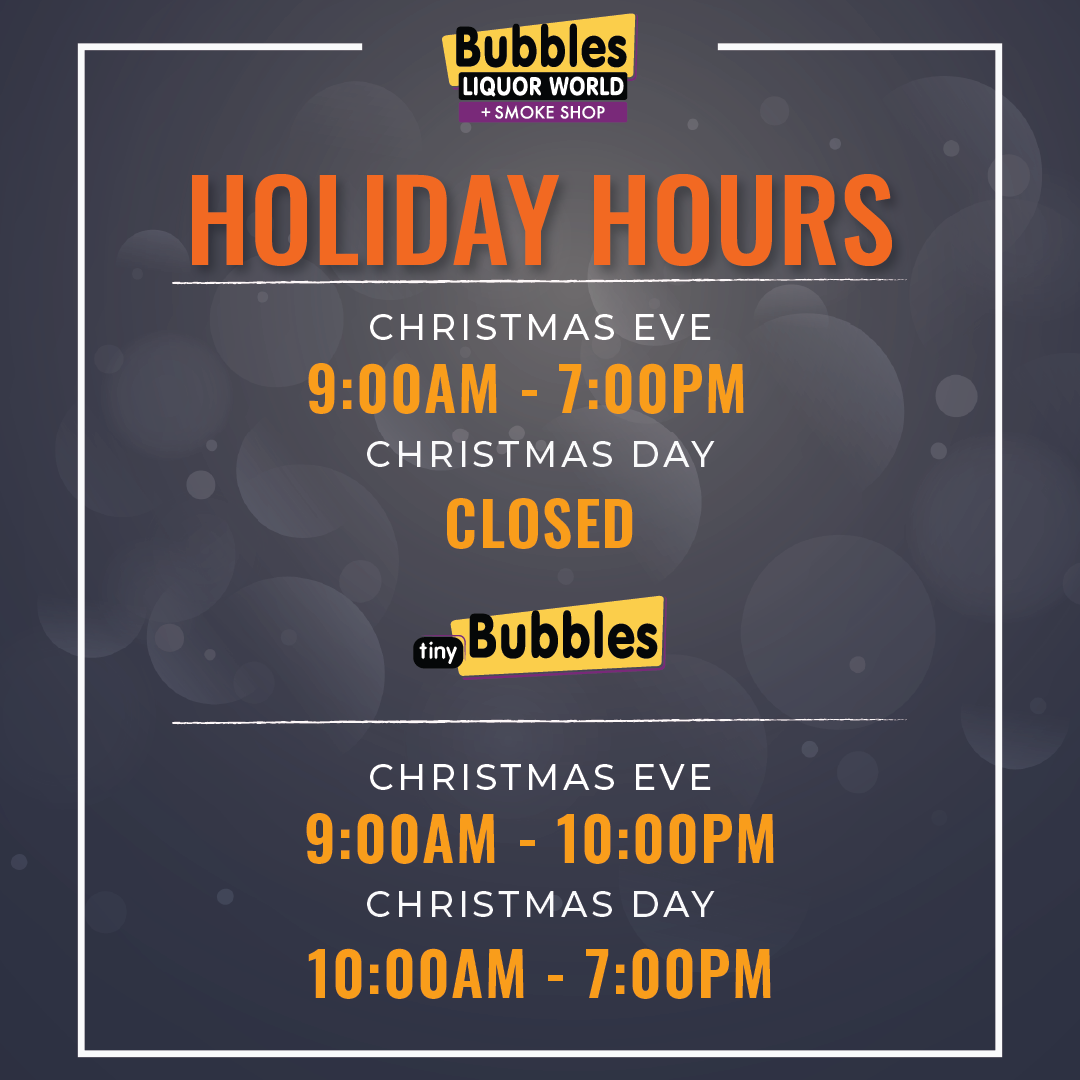 Santa’s not the only one working overtime. See our Christmas hours for Bubbles and Tiny Bubbles and grab everything you need for a merry, very spirited holiday. |
