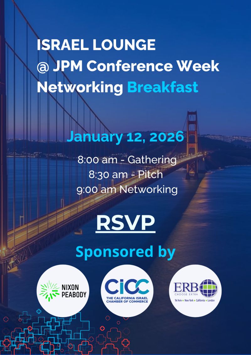 Heading to San Francisco, California for J.P. Morgan's annual Healthcare Conference, January 12-15? Check out these opportunities offered by COIL's partners at the California Israel Chamber of Commerce (CICC):