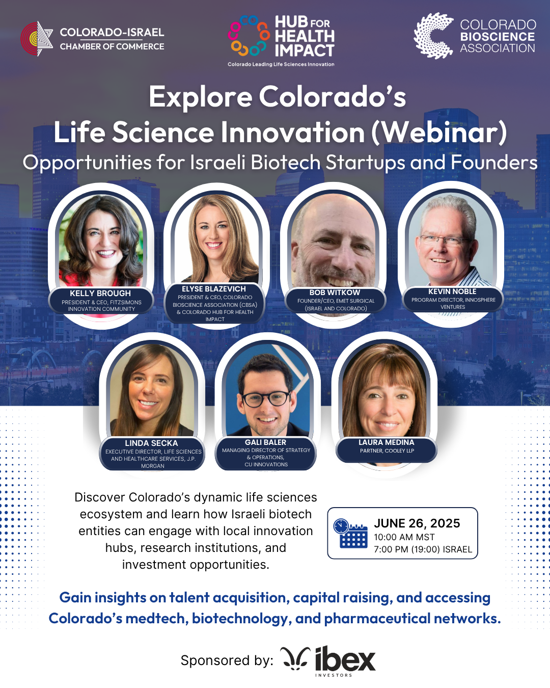 The webinar will feature leading voices from innovation hubs, healthtech founders working between Colorado and Israel, academic institutions, and startup accelerators, including: