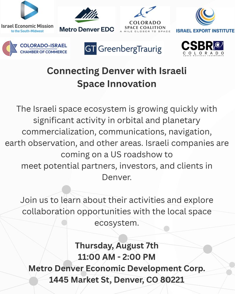 On August 7, we're bringing some of Israel's most innovative space companies to Colorado to connect with the local ecosystem.
