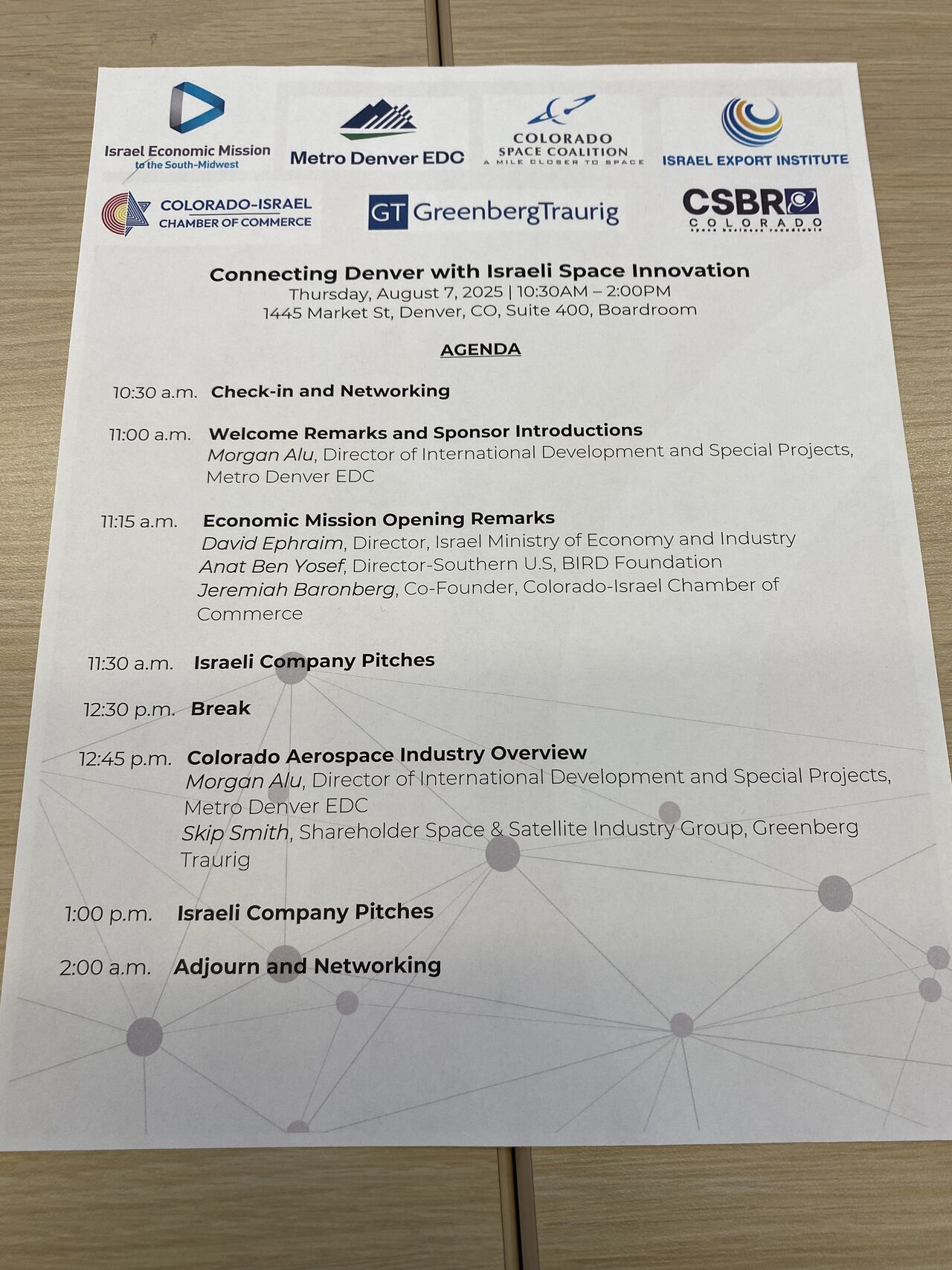 CO-IL helped arrange three programs designed to facilitate connections and opportunities between the visiting Israeli companies and Colorado leaders in the space and aerospace industries.