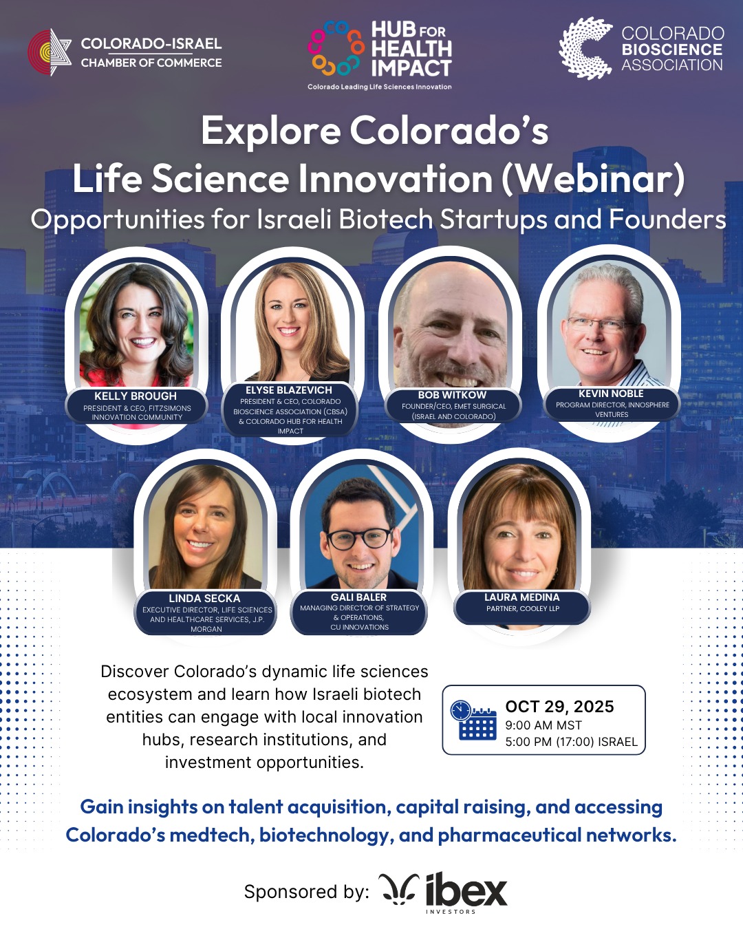 Thank you for registering for our October 29th webinar presented by the Colorado-Israel Chamber of Commerce, Colorado Bioscience Association and Colorado Hub for Health Impact.