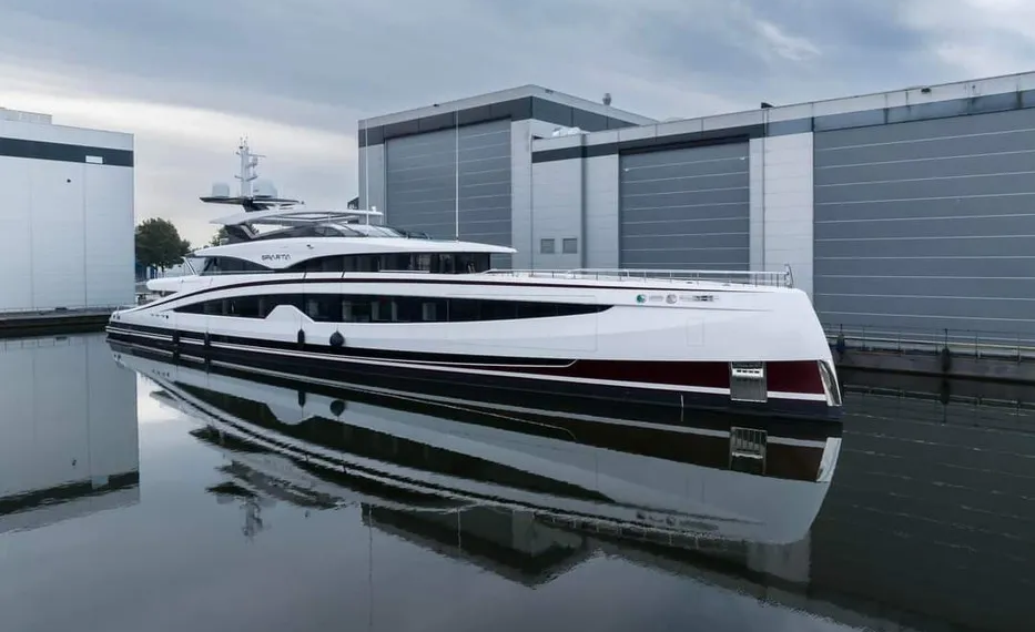 A nautical-inspired look that combines white trousers with navy suede loafers and a textured cardigan. The design’s balance of light and dark shades offers a striking contrast while maintaining a refined yet casual feel.