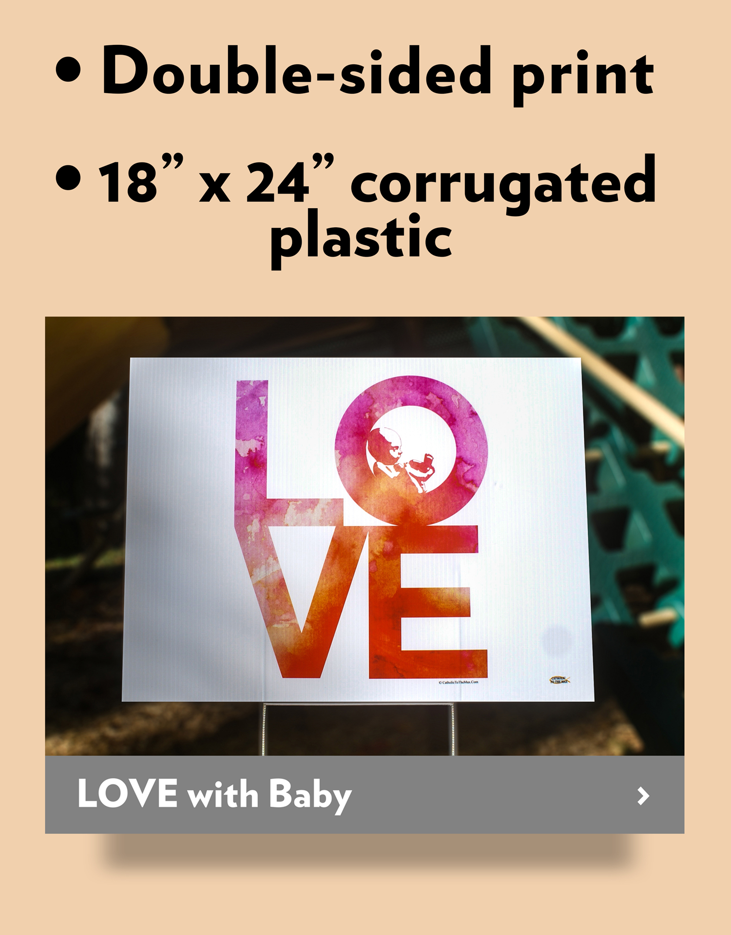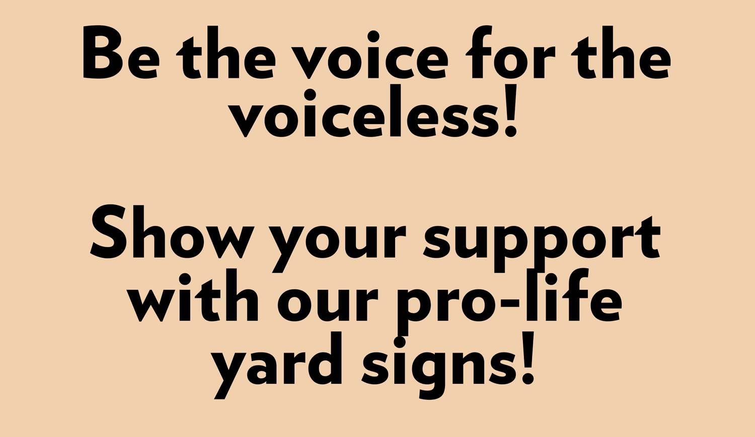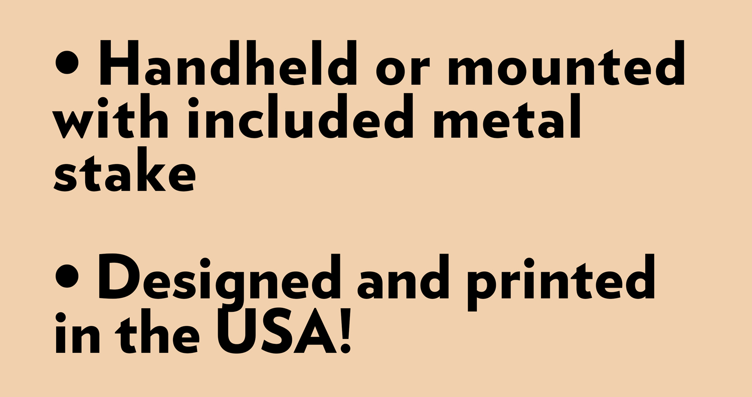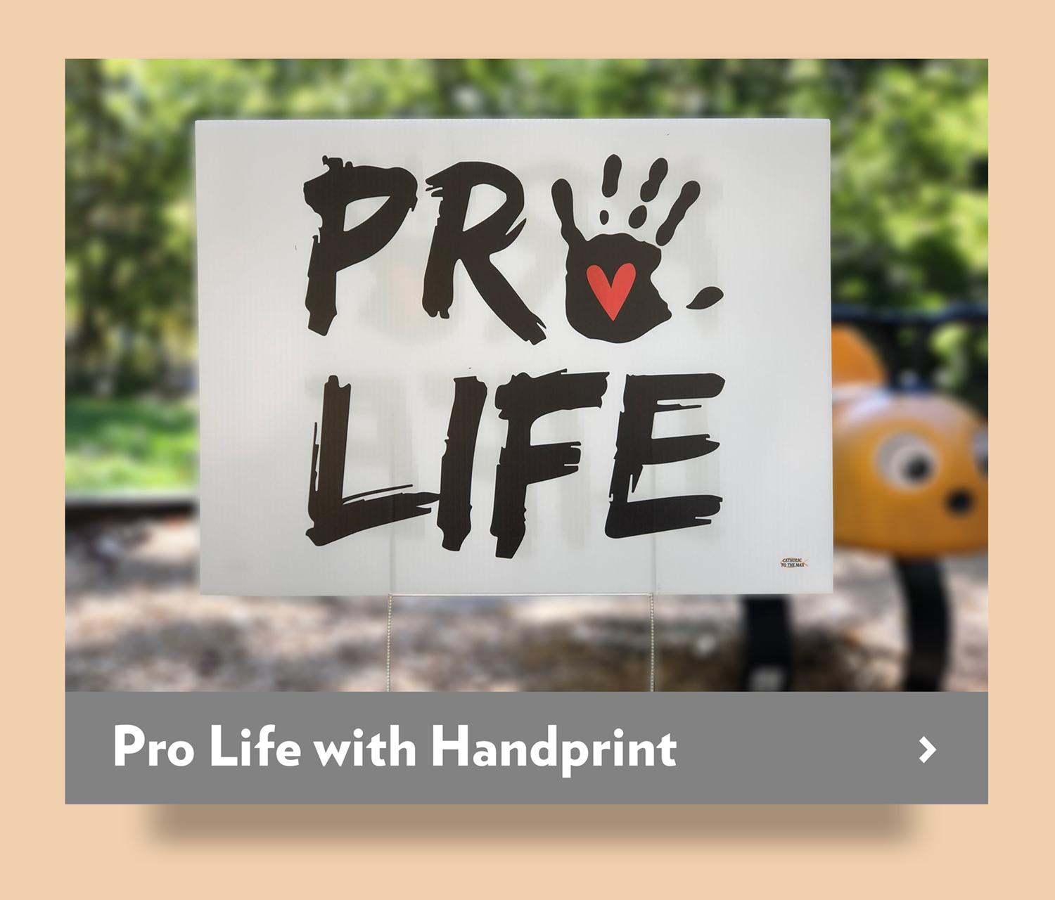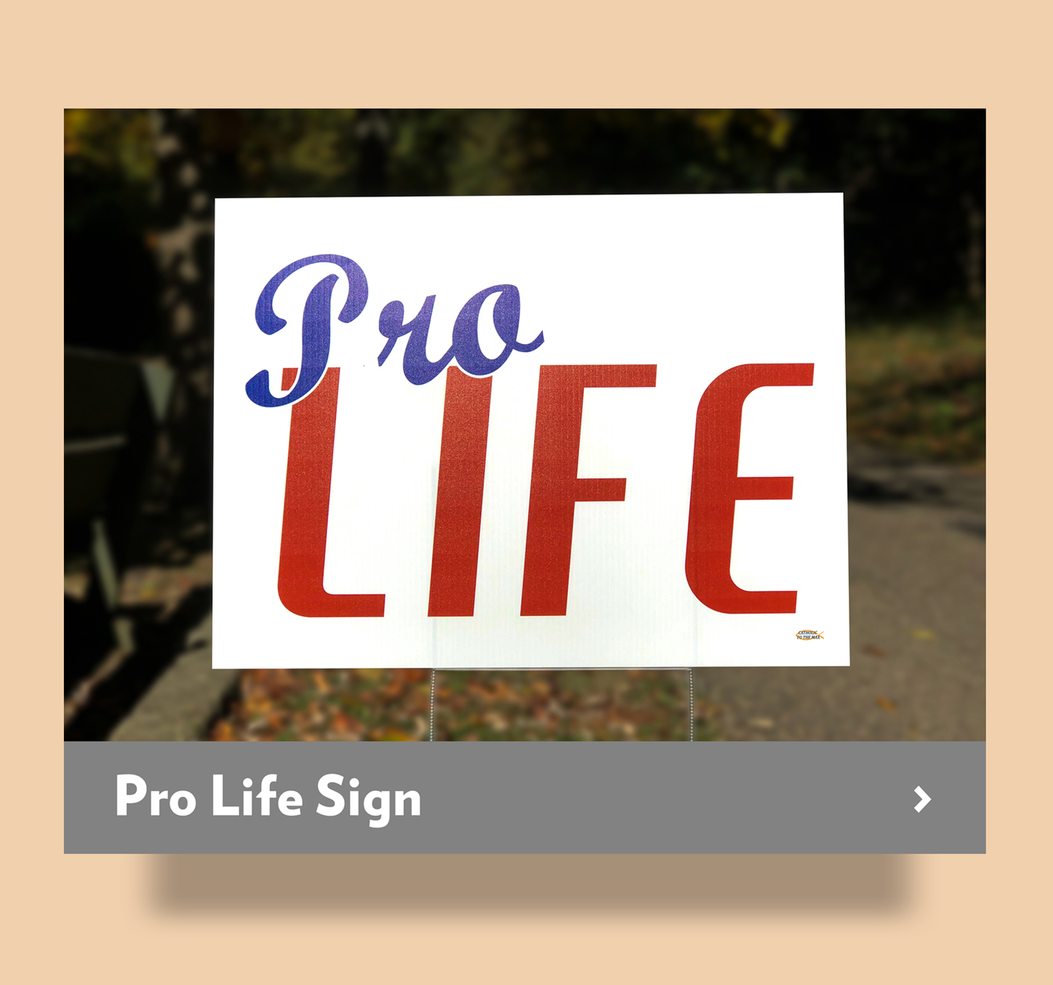 Be the voice for the voiceless! Show your support with our Pro-Life yard signs! Featuring double sided print on 18"x24" corrugated plastic. Can be handheld or mounted with our included metal stakes. Designed and printed in the USA!