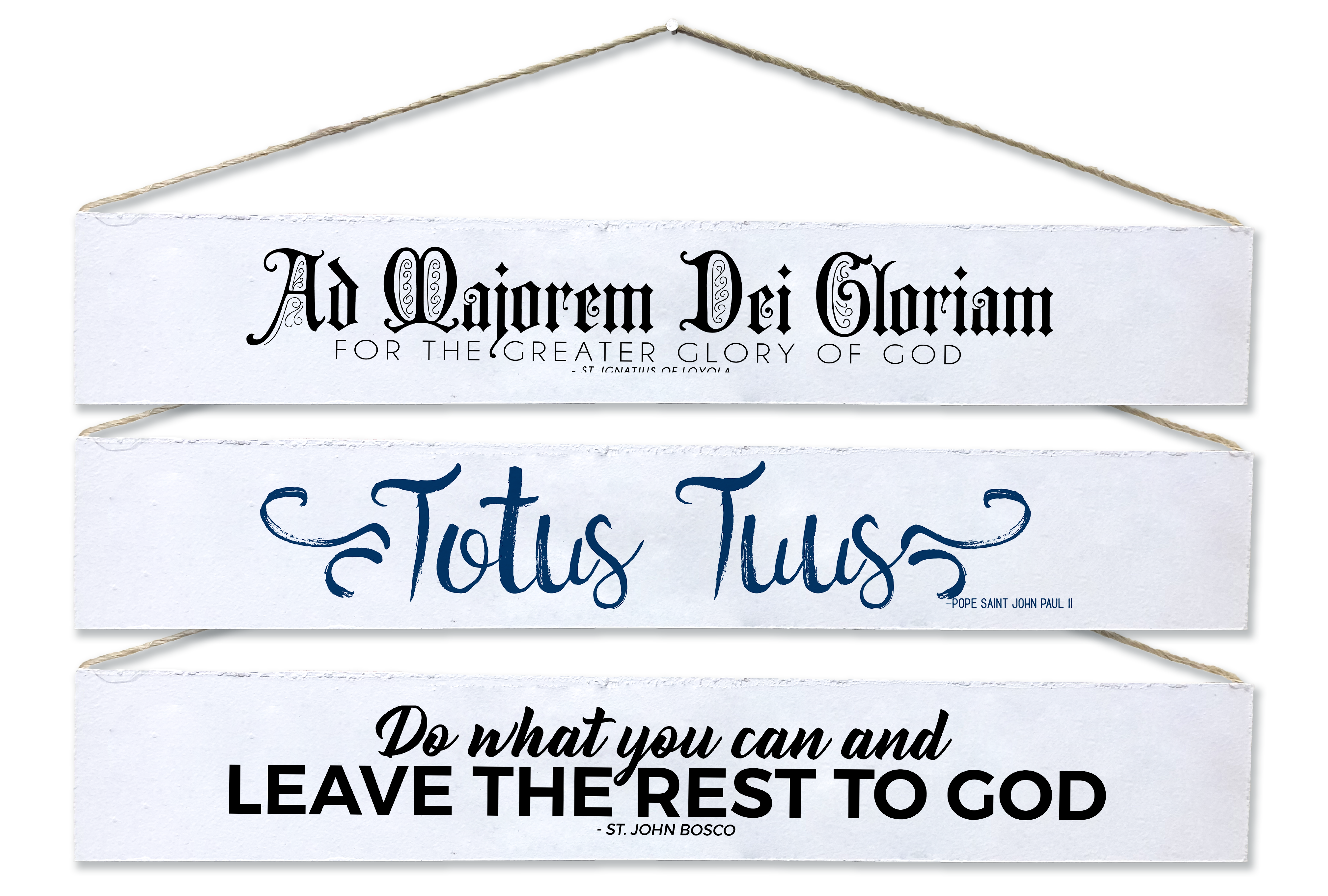 Inspire faith in your children and in yourself with the wisdom of the saints. Each quote plaque is 100% made in the U.S.A. With over 150 different saint quotes to choose from, you can hang this rustic-styled piece anywhere with a twine cord that hangs 2-3" above the plaque. |