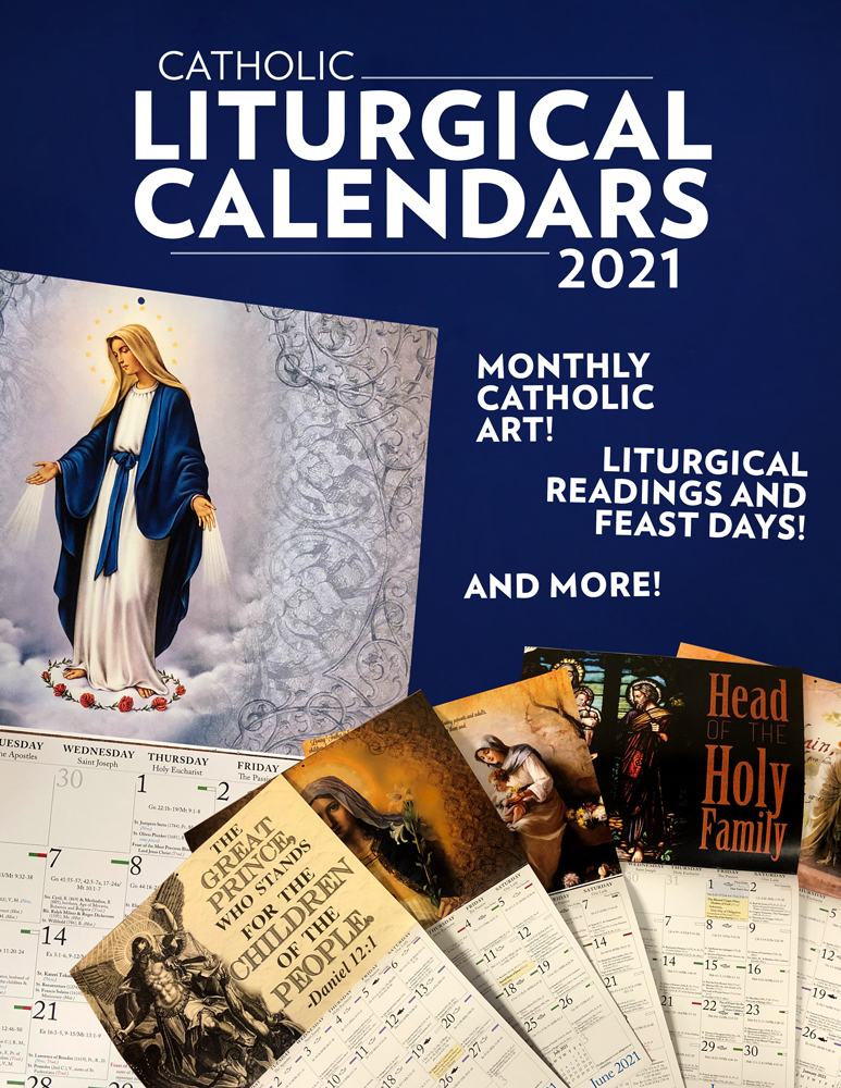 Our 2021 Liturgical Calendars are in! With beautiful Catholic art for each month, these calendars help you keep track of liturgical readings, Catholic feast and holy days, secular holidays and more! Perfect for your home or parish, each calendar is centered around a specific saint or theme. From St. Joseph to St. Michael, to Mary and prayers for the family, our calendars are sure to make the perfect gift for the upcoming year.