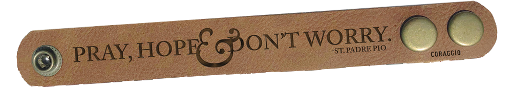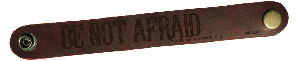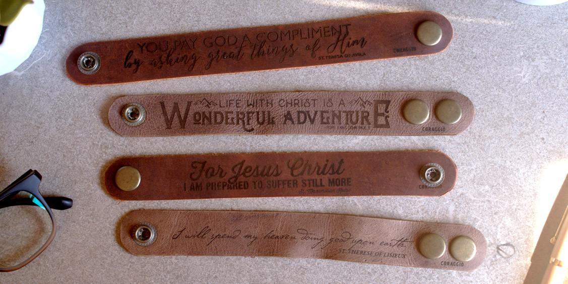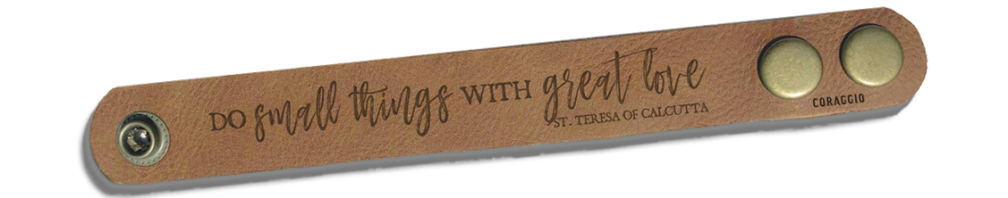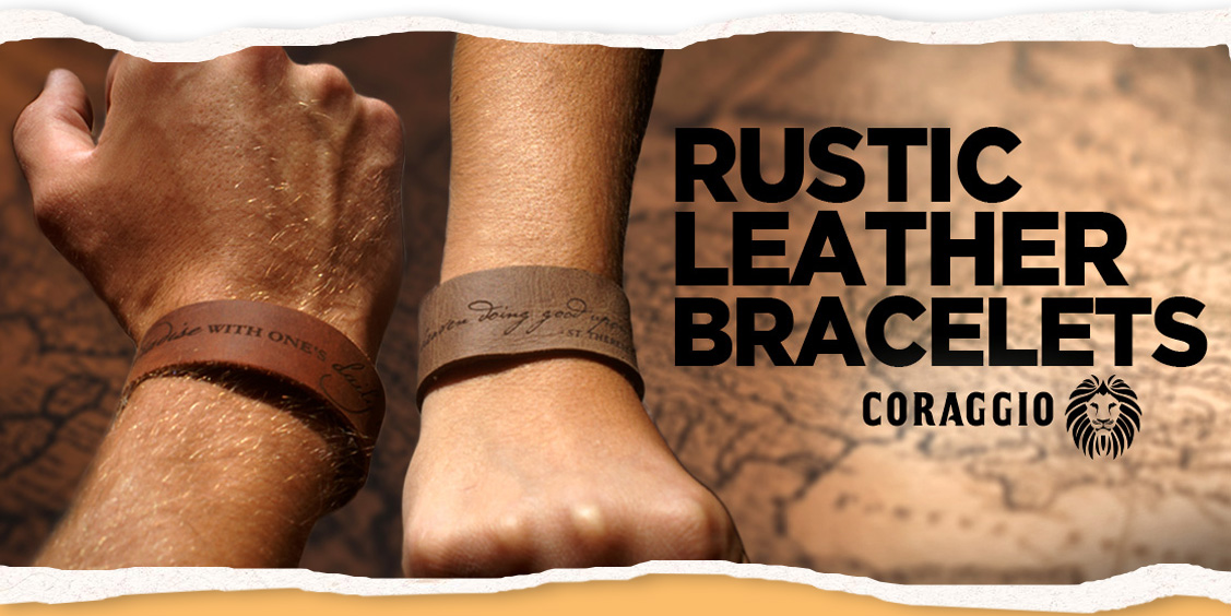 Introducing our newest item to the Coraggio line - Rustic Leather Bracelets! Engraved with inspiring Catholic designs, our bracelets are crafted from 100% soft, genuine leather - perfect to wear for everyday occasions. Each bracelet comes in differing shades and patterns that make no two the same. They are designed and engraved in our Steubenville, OH workshop.