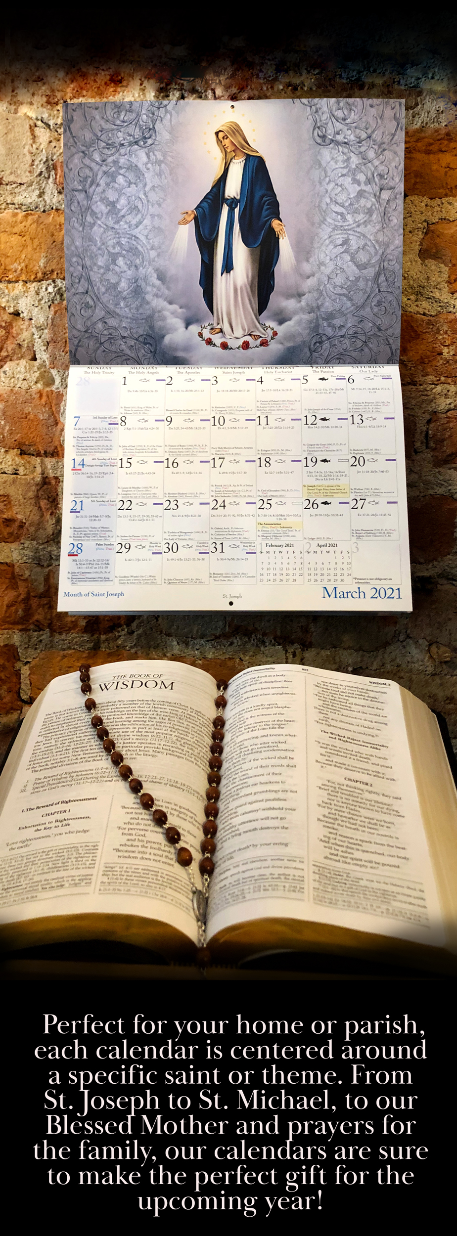 For one more week! You can get 25% off all out calendars! Just use the coupon code "CALENDAR25" at checkout! Perfect for your home or parish, each calendar is centered around a specific saint or theme. From St. Joseph to St. Michael, to our Blessed Mother and prayers for the family, our calendars are sure to make the perfect gift for the upcoming year! |