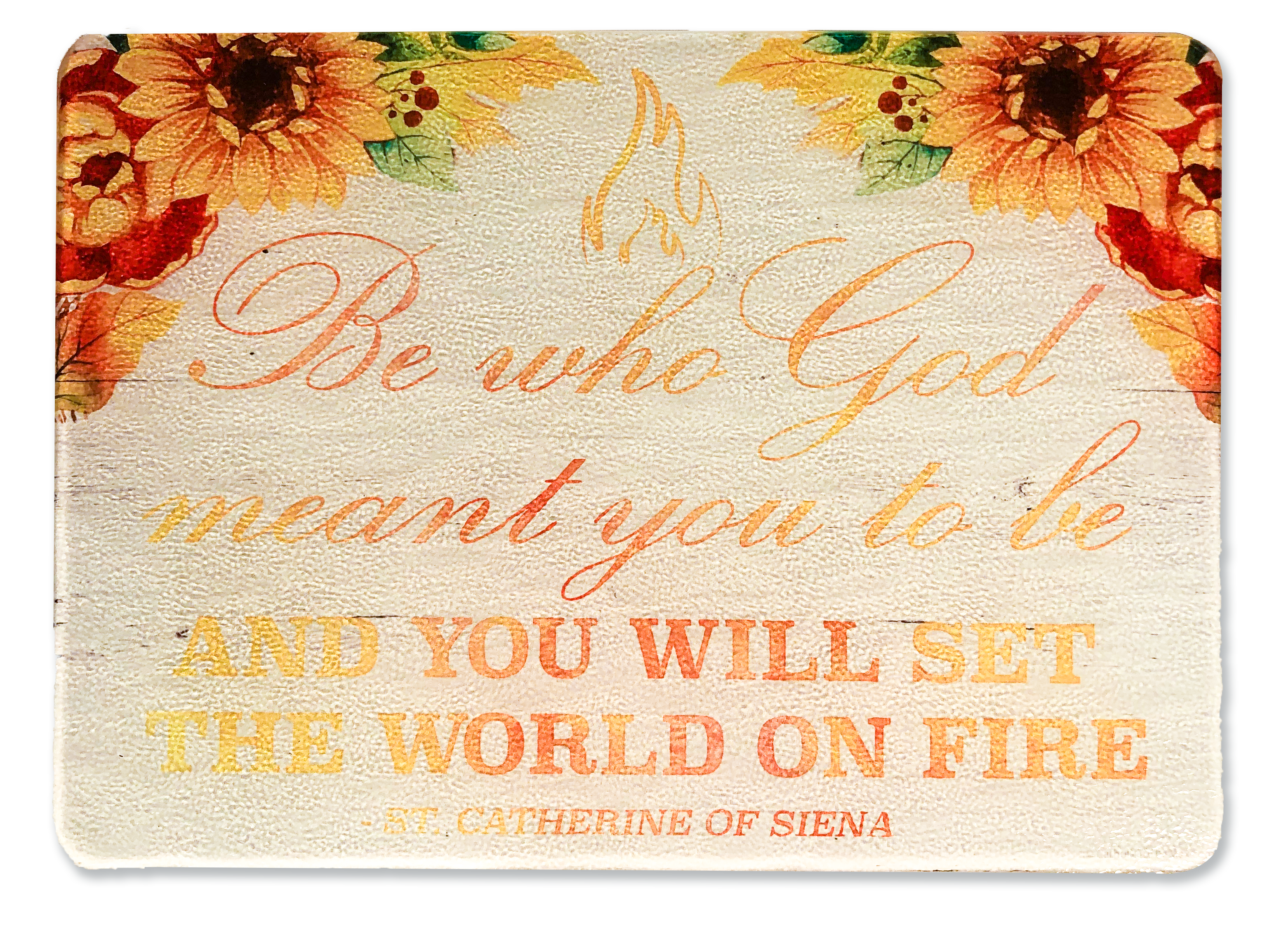 Our Catholic cutting boards are made from tempered glass: durable, easy to clean, and more sanitary than wood or plastic. They come with rubber feet for stability and to provide airflow underneath, protecting your counter or table from heat, condensation, and scratching. Making beautiful serving trays that can double as a counter protector or trivet, they are 100% USA made and dishwasher safe. |