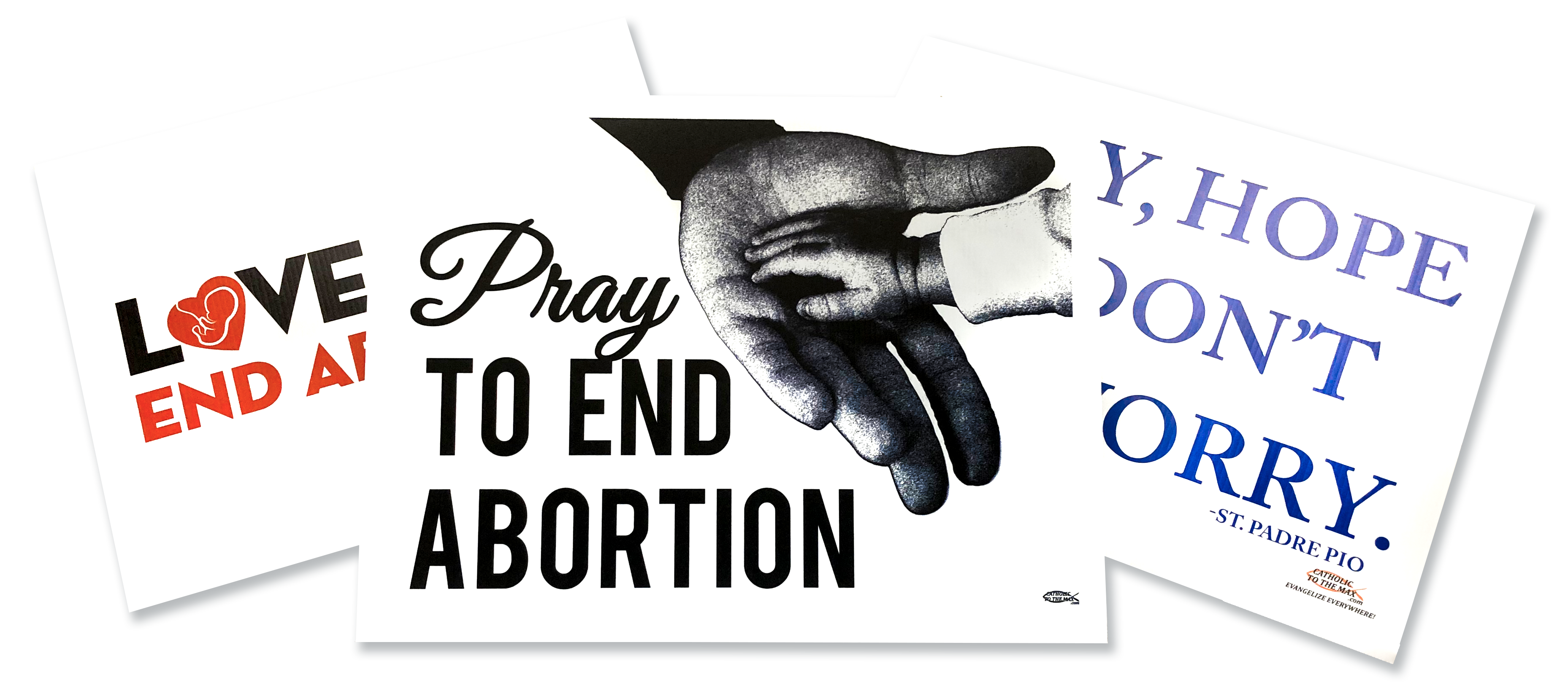 Help fight an end to abortion and proclaim your faith with our wide selection of Catholic yard signs. From pro-life activism to Catholic art and saint quotes, these double sided yard signs are great to place outside of your home or place of business. Printed on corrugated plastic, they come in a 18"x24" size along with included metal stakes. |