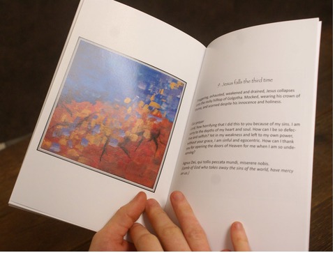 As I read both the introduction to the book and the explanation notes for each painting, I was surprised to be moved by these images and their accompanying texts. It was striking how very personal the reflections are. The author clearly put herself into this writing, and you can tell that every word was intentionally chosen, reflecting her own personal love of Christ, empathy with His Passion, and desire to walk the road up to Calvary with Him.