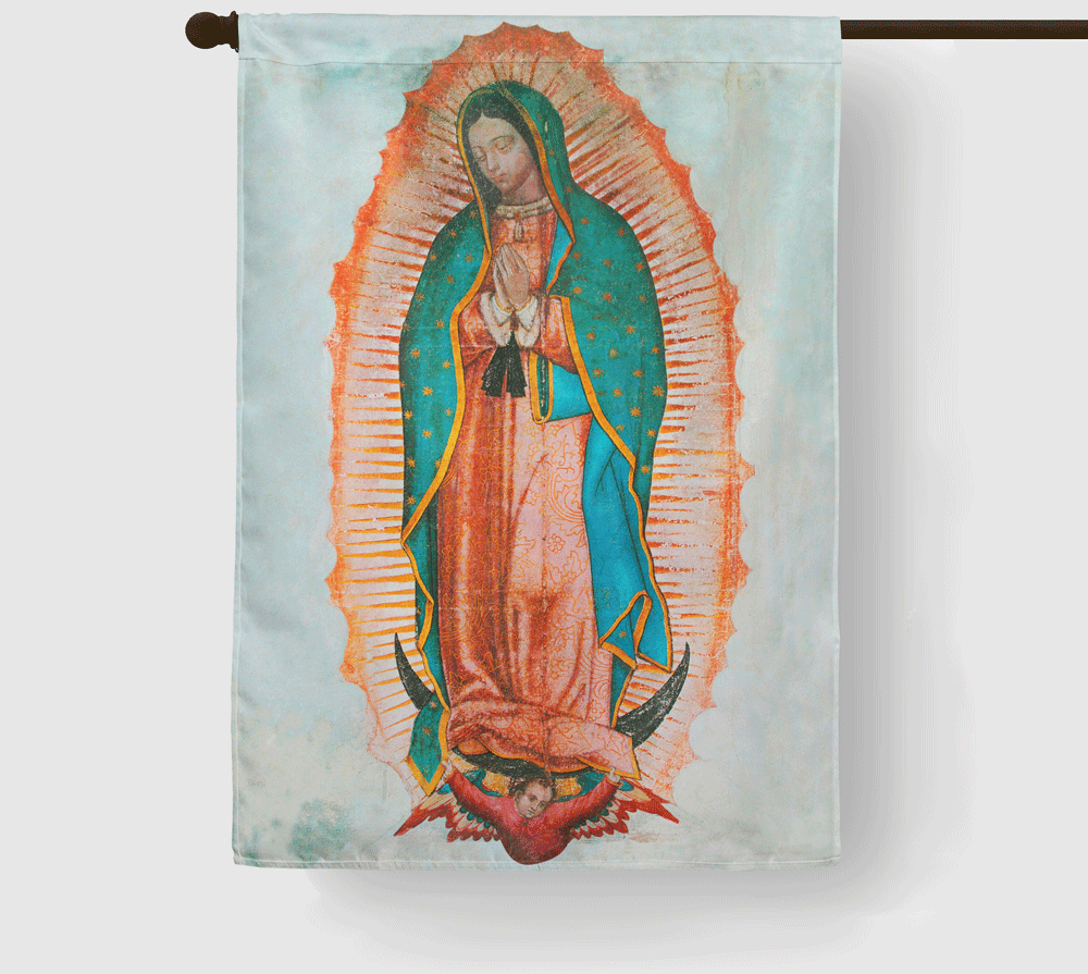 Each flag is 28"x 40" made of 150 denier woven polyester and double-stitched around the edges for durability. The polyester fabric can withstand high winds and is more fade-resistant than typical cotton house and garden flags. With a sleeve that fits up to a 2.5" diameter pole, proudly display the faith outside your home with our grand selection of Catholic art and images.