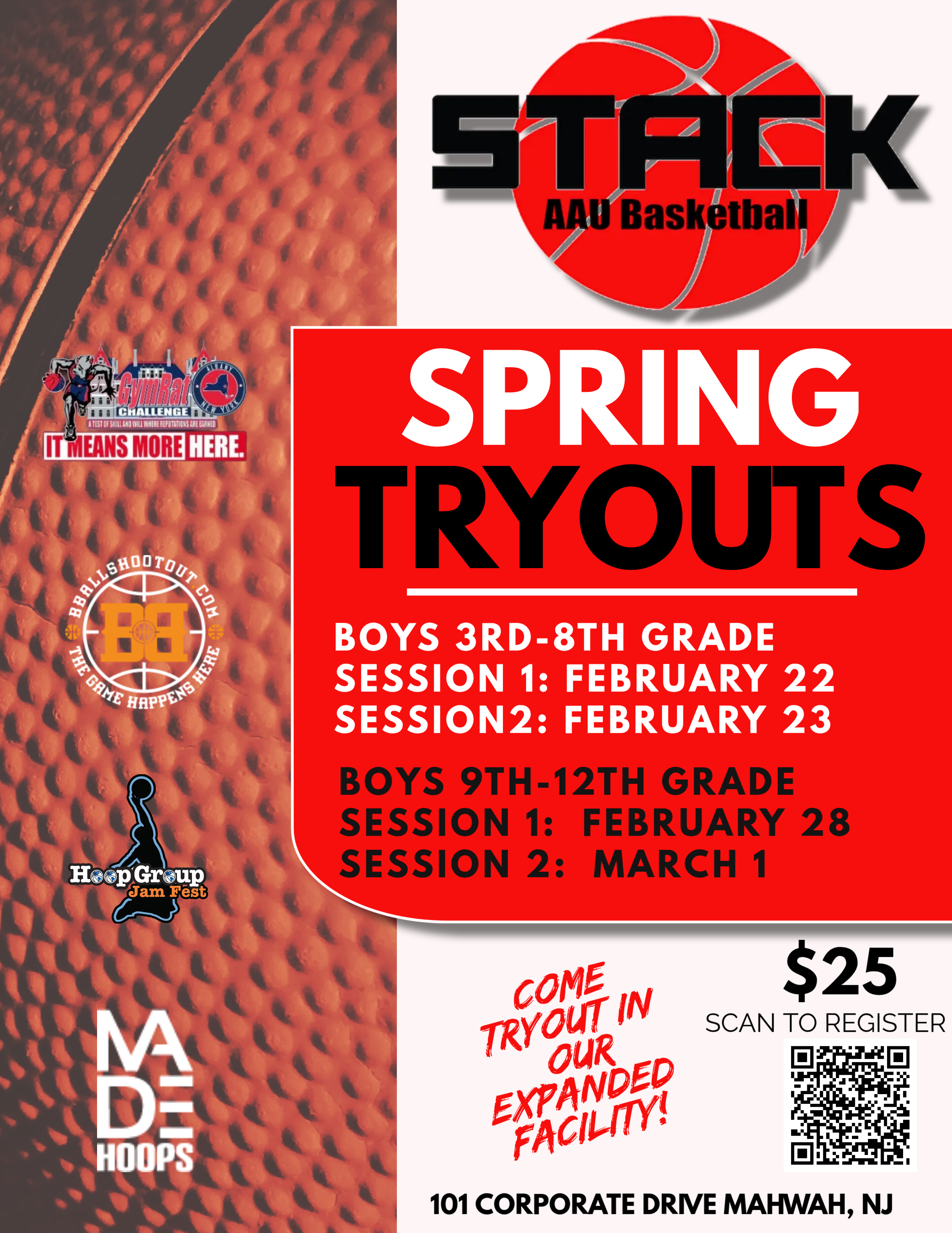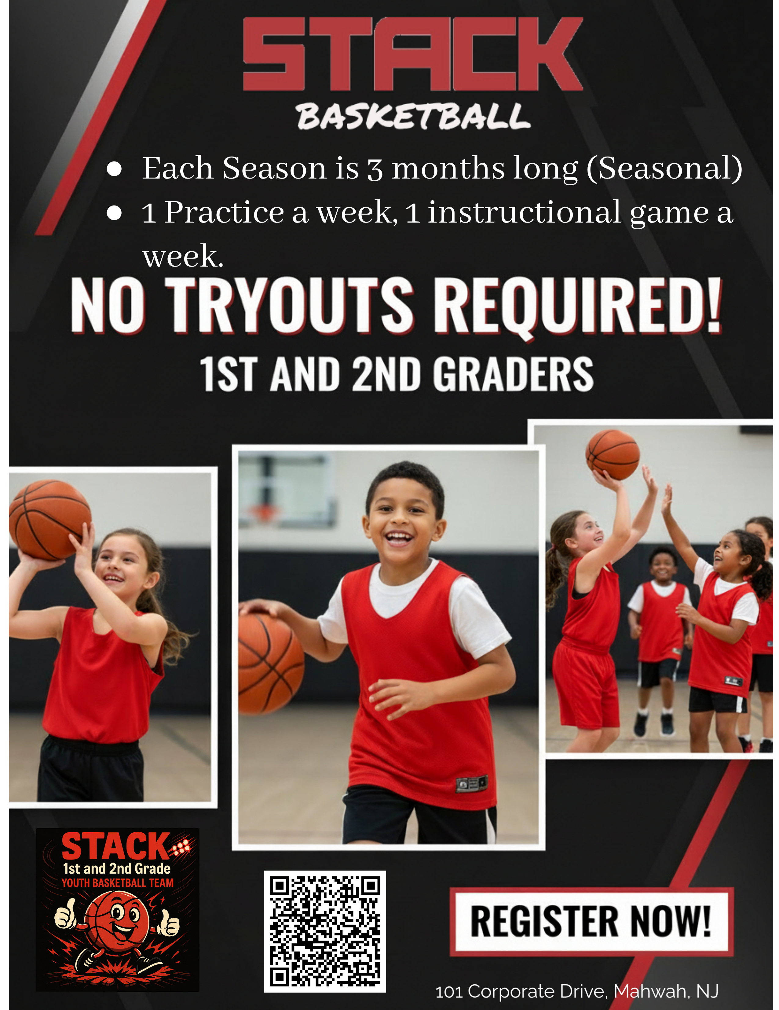 STACK 1/2 YOUTH BASKETBALL LEAGUE (BOYS & GIRLS)SPRING 2026 - NO TRYOUTS ARE REQUIRED Our Spring Instructional League is built for young hoopers who are just getting started or still learning the game. This 3-month season focuses on fundamentals, confidence, and having fun while learning how basketball really works. Players will train once per week to develop core skills like dribbling, shooting, passing, spacing, and teamwork, then compete in one instructional game per week where coaches guide the action and teach in real time. Every player is involved, encouraged, and supported in a positive, high-energy STACK environment. This is the perfect next step for 1st and 2nd graders to build skills, confidence, and a love for the game. Season: March-May 2026 • Basic Package (games / practices) • Elite Package (games / practices, unlimited skills classes) Bonus Package (games/practices, unlimited skills classes & 3 private training sessions) SELECT THE PACKAGE THAT WORKS FOR YOU & JOIN US! | |