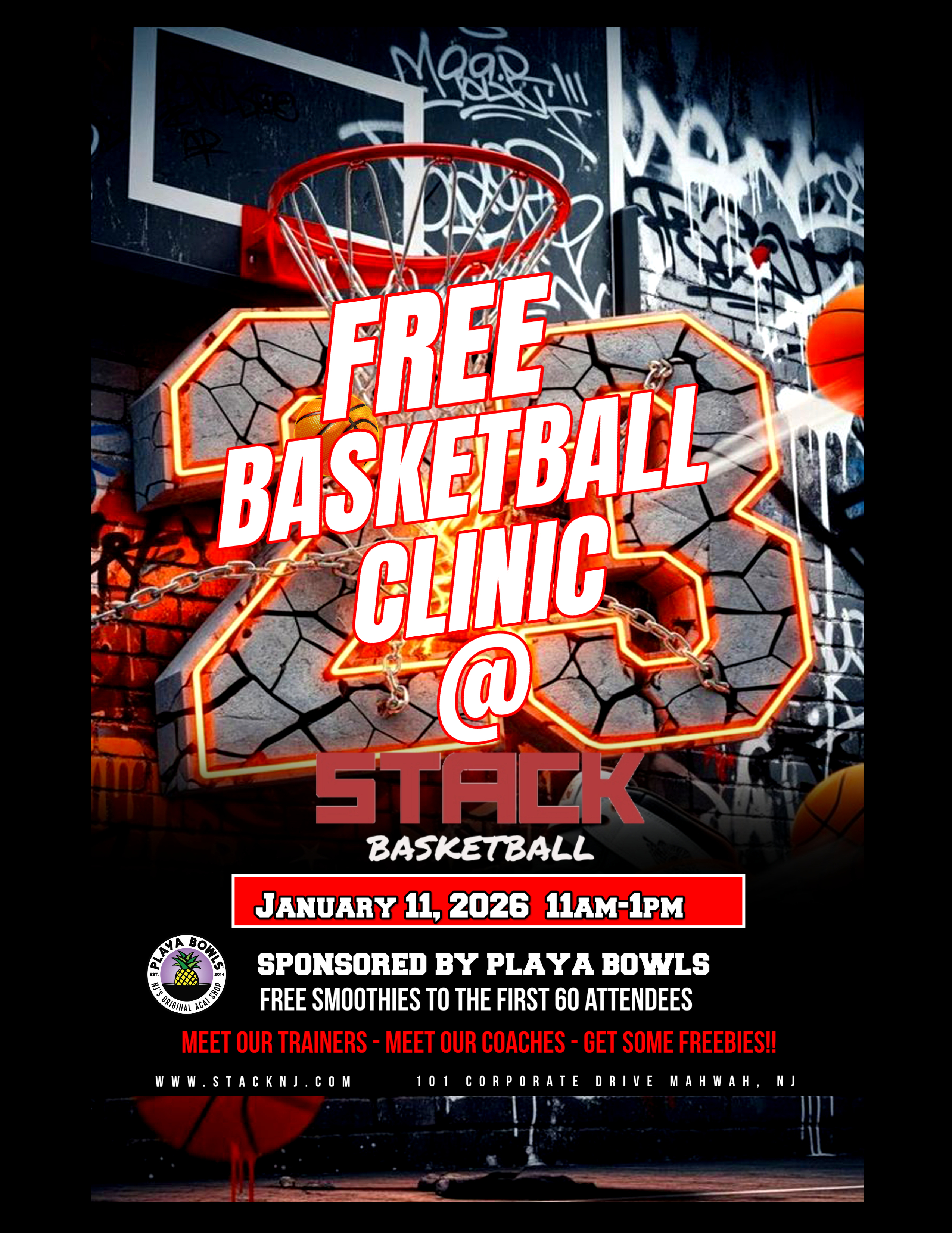 | EXPERIENCE STACK LIKE NEVER BEFORE IN OUR EXPANDED FACILITY | | Free ClinicNo Registration Required - Check-in at Door Raffle tickets provided upon entry.Come for the Basketball and Stay for the Prizes! |