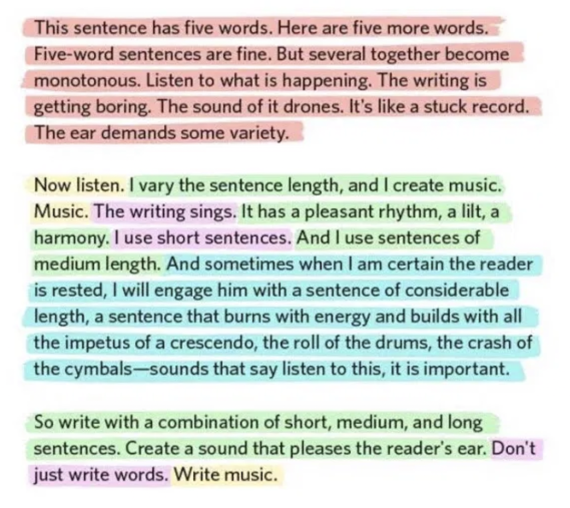Look how easily the sentences read when a range of lengths are used.