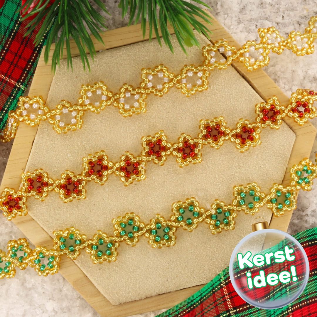 ✨ Ben je op zoek naar een creatief idee voor Kerst? 🎄 Deze sterrenarmbandjes zijn perfect om zelf te maken! ✨ Je hebt alleen Miyuki rocailles, fireline en bijpassende slotjes nodig om ze te rijgen. ✨ In onze blog lees je stap voor stap hoe je deze sprankelende armbandjes zelf kunt maken. 🎄 Daarnaast zijn ze ook verkrijgbaar als DIY pakketjesin verschillende kleuren, zodat je meteen aan de slag kunt. ✨