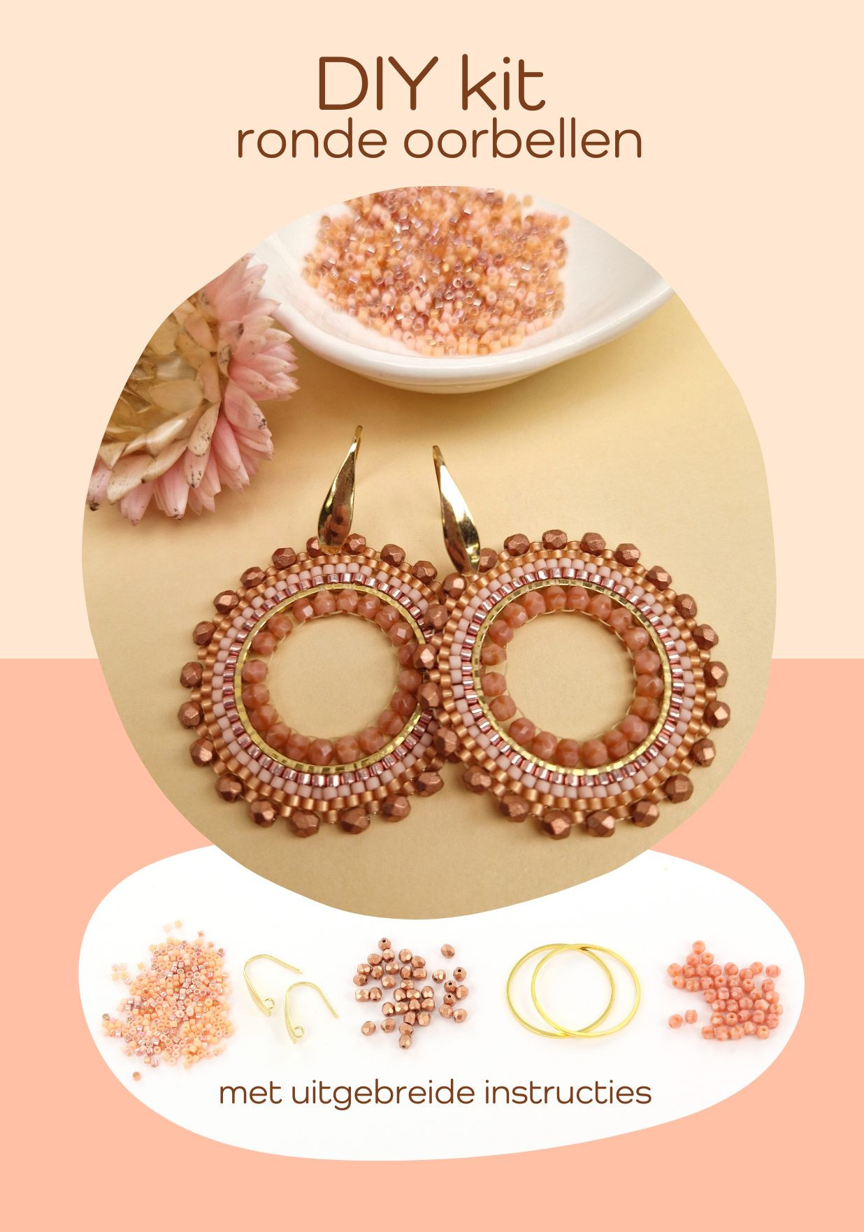 | We hebben een gloed nieuwe DIY pakketje ontwikkeld zodat je zelf deze prachtige oorbellen kan maken. In het pakket zitten alle benodigde kralen en onderdelen, samen met een uitgebreide uitleg met duidelijke foto's van alle stappen. Je hebt enkel nog wat rijgdraad, een naald en 2 tangetjes nodig. Heb je dit nog niet, dan kun je deze producten onderaan bij het pakketje gemakkelijk vinden en toevoegen aan de winkelmand. |
