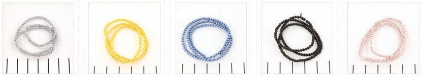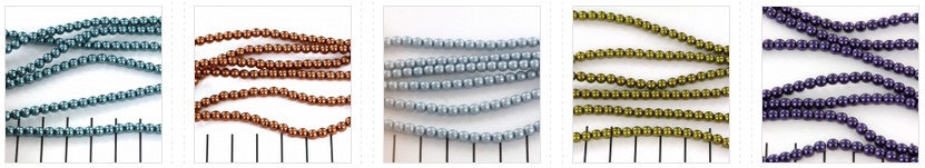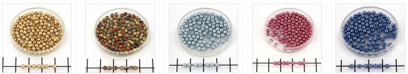 | We zijn weer aan het shoppen geweest en hieronder zie je een deel van de kleurtjes die we hebben, maar klik op de foto's om naar het hele overzicht te gaan. En zoals je hieronder al kunt zien, maken we zoveel als het kan, steeds andere foto's als het om een ander artikel gaat. In dit geval liggen de pareltjes van 2 mm in een rondje, die van 3 mm in het ronde bakje en die van 4 mm in strengen over de hele breedte van de foto. Zo kun je in een oogopslag zien welke maat je voor je hebt. |