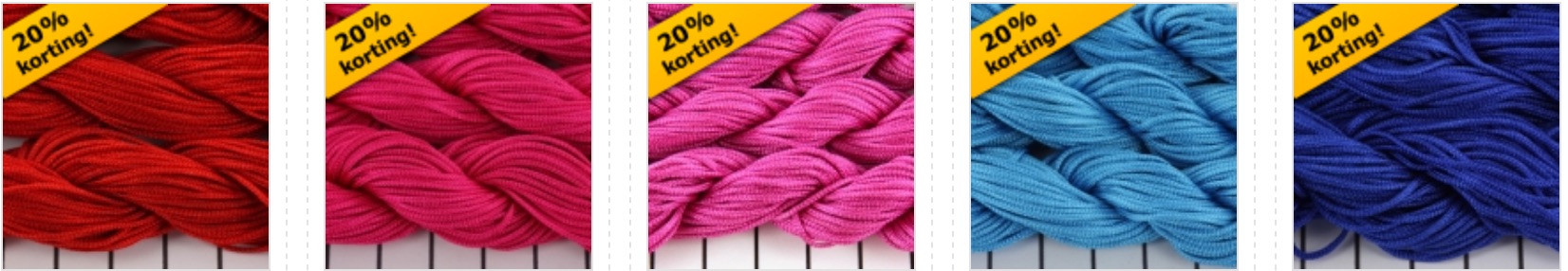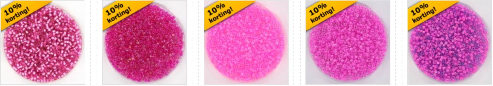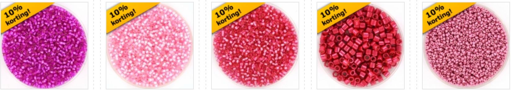 In de aanbieding van deze week hebben we een heleboel roze Miyuki met 10% korting en allerlei koordjes met 20% korting.