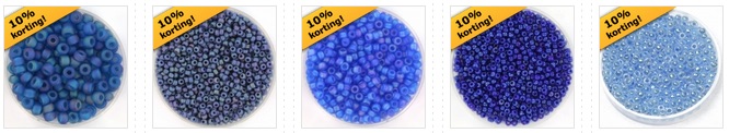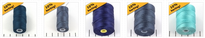 Voor het maken van armbandjes met een schuifknoop kun je heel goed het rijgkoord gebruiken. Wanneer je dit een keer zou willen proberen, hebben we komende week een aantal mooie blauwe kleuren in de aanbieding, samen met verschillende maten rocailles.