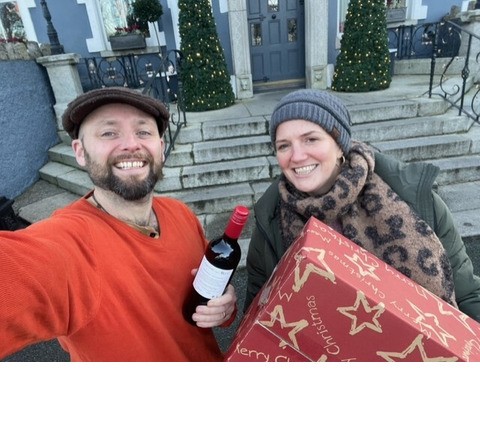 I had the pleasure of giving our winner, Orla Kelly a hamper from Tierney's Gift show and a bottle of wine from Queens this morning.