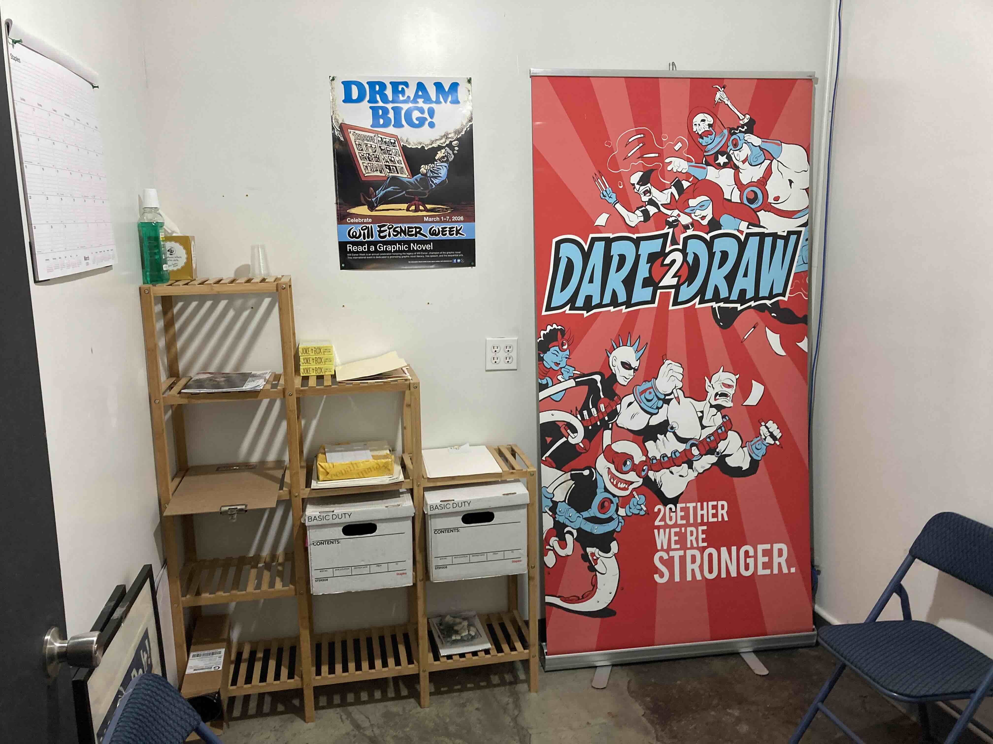 An affordable, amenity-filled workspace for comic book creators, writers, cartoonists, animators, digital creators, and graphic designers. This is a unique collaborative opportunity through the Creator CODE initiative: the chance to work in a dedicated creative environment while having your work featured and promoted through Dare2Draw Studios’ active marketing channels. Enjoy a focused, intelligent, secure, low-density, and welcoming atmosphere.