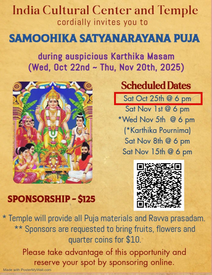 Subject: Saturday, October 25 - Samoohika Satyanarayana Puja at 6 PM