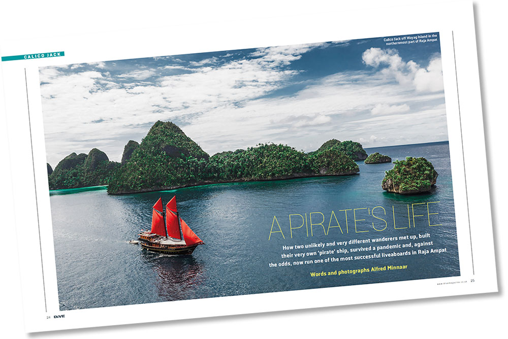 An English music producer gentleman and an Australian adventure sports rebel might seem unlikely partners, but between them, Jamie Mayer and Adam Fornasiero built one of Raja Ampat's most successful liveaboards. Alfred Minnaar spent some time working on his inner pirate when he met the duo to learn of Calico Jack's construction by traditional Bugis craftsmen and its next decade sailing through Indonesian waters with its red sails hoisted high..