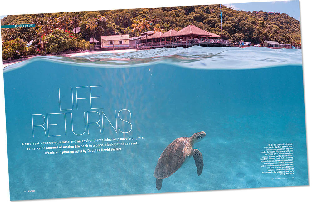 Like many reefs around the world where development has overtaken the local environment’s ability to self-sustain, the coral around the tiny Caribbean island of Mustique took a battering. In 2015, however, Candian rock musician Bryan Adams brought coral restoration experts to the island to start a reef regeneration programme. Douglas David Seifert took to the water to explore how life on Mustique’s reefs has started to return, bringing the underater world to life with more of his stunning photography.