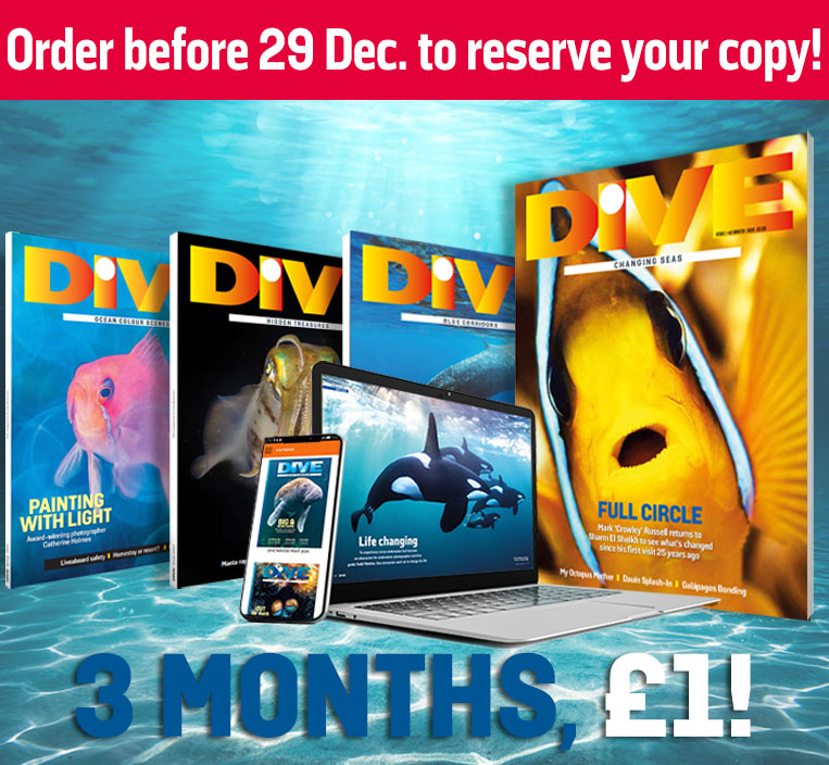 DIVE Magazine’s beautiful quarterly publication is printed on glossy art-quality stock, showcasing some of the world's best underwater photography in the way it was meant to be seen. Accompanied by superbly written articles from some of the best writers in the field, DIVE is a coffee-table treasure, not a magazine-rack filler – and we’re offering a three-month print & digital trial subscription for just £1 - a saving of more than 90 per cent!