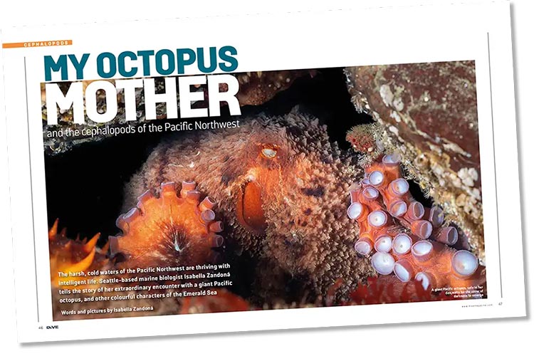 On a routine dive out of Seattle in the Pacific Northwest of America, marine biologist and photographer Isabella Zandoná experienced an encounter with a female giant Pacific octopus that would change her outlook on life, scuba diving, and the charismatic critters that she dives with under the Emerald Sea.
