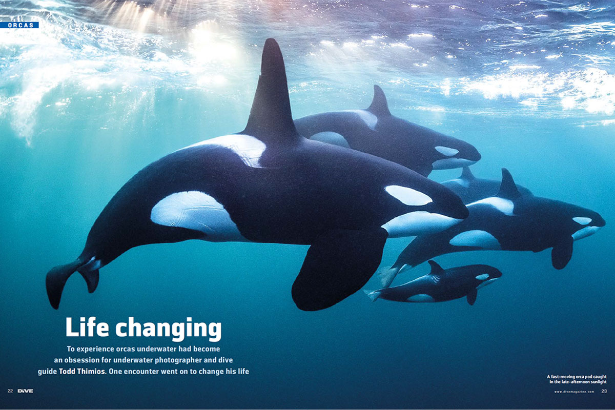 Our Winter 2023 print magazine contains some of the most stunning orca imagery ever taken. Subscribe now to read Todd Thimios' story of how watching a documentary as a child led to the most epic underwater encounter of his life...