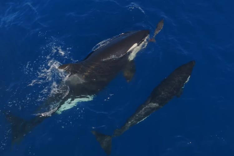 Some stunning footage of orcas hunting dolphins where they teach their calves the behaviour.