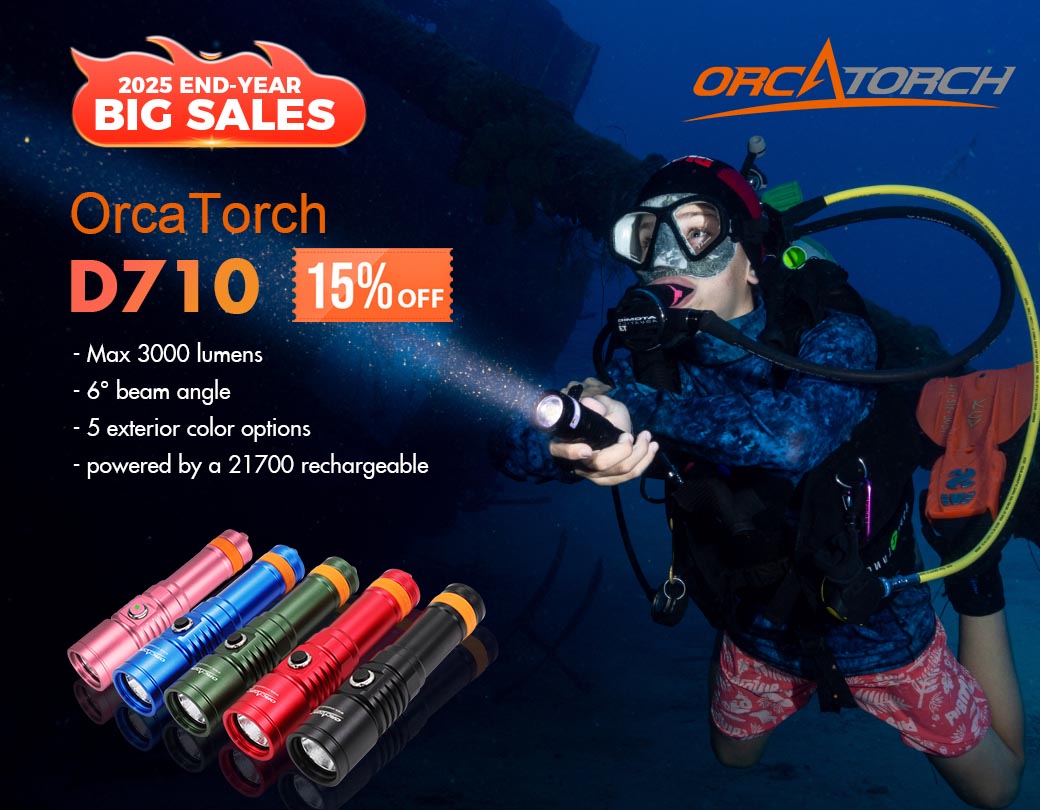 Don’t miss our year-end offer on the D710 dive light — compact, powerful, and ready for your next adventure.
