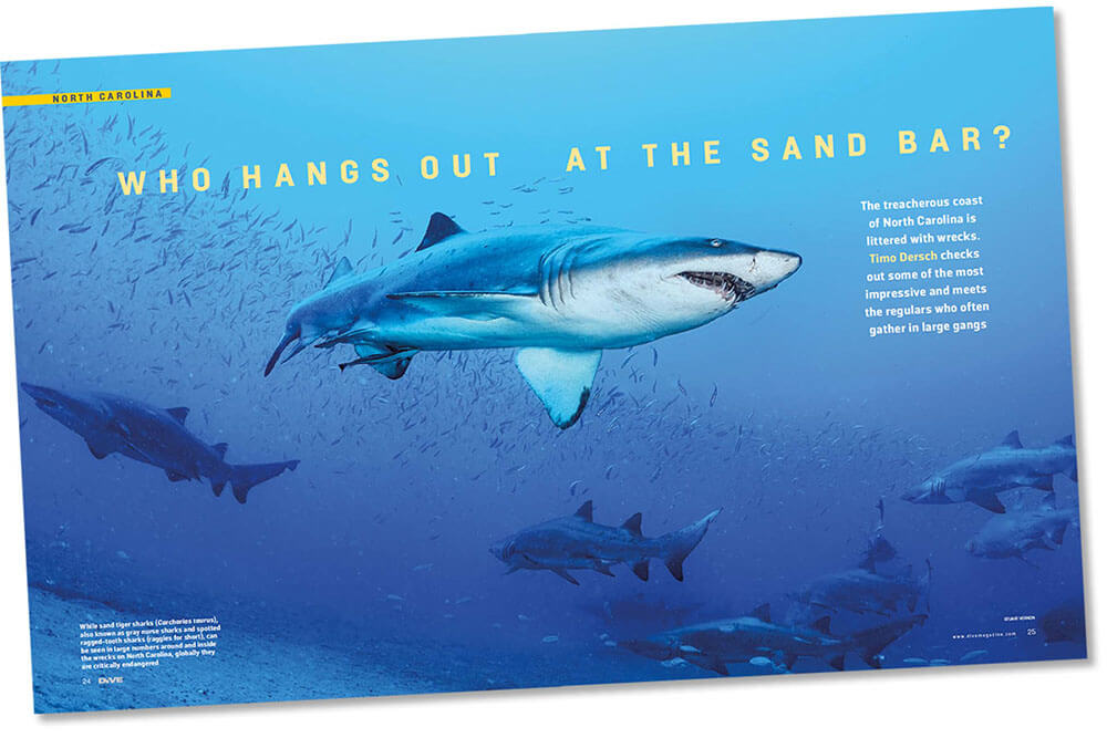 If you want to dive with a lot of wrecks and a lot of sharks, North Carolina is a place you need to visit. Timo Dersch reports from its treacherous Atlantic coastline, where large gangs of ragged-tooth sand tiger sharks appear to enjoy hanging out on the wrecks as much as human divers.